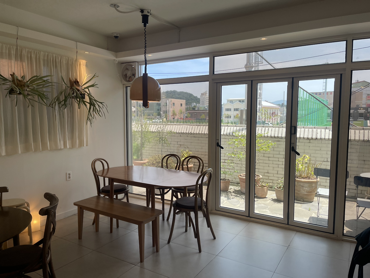 케이크가 맛있다고 소문난 카페라 어제 들렀었다. 화랑식당 식사 후 왔는데 케이크가 솔드 아웃이었다. 그래서 포기했던 디저트 카페를 이번 여행 마지막 디저트 플레이스로 삼는다. 시장집에서 환상적인 식사를 하고 남해시장에서 과일을 잔뜩 샀다. G는 시골시장이라 그런지 가격이 엄청 싸다고 난리다.