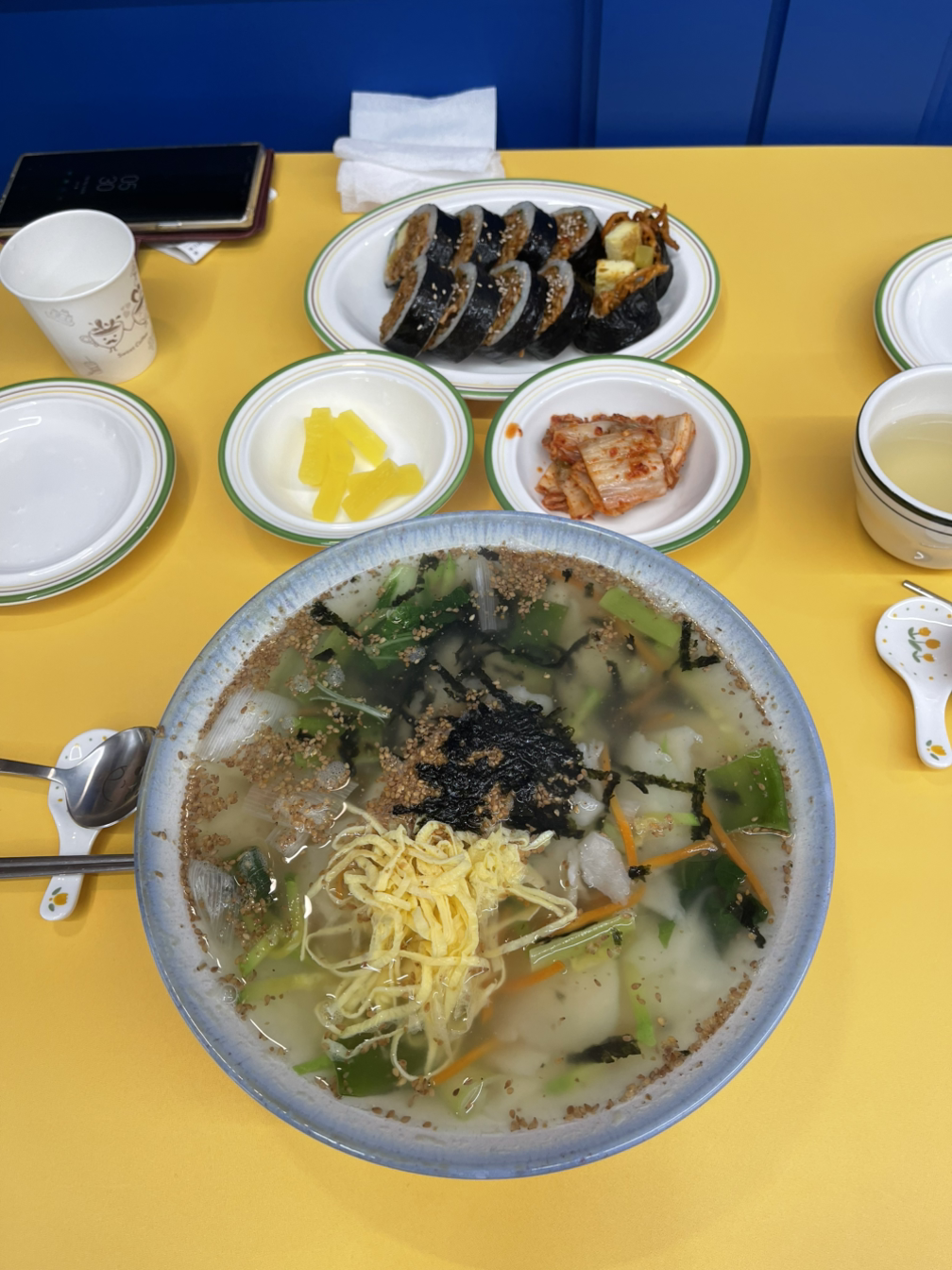 읍내에 있는 김밥집을 검색하고 움직인다. 군청 앞 깔끔한 분식집이다. 매운 어묵김밥과 수제비를 주문한다. 어묵을 고추장에 볶아 김밥의 주재료로 넣는데, 어린 시절 K의 어머니 김밥 레시피랑 같다. 수제비는 평범하지만, 김밥이 입맛에 잘 맞았다