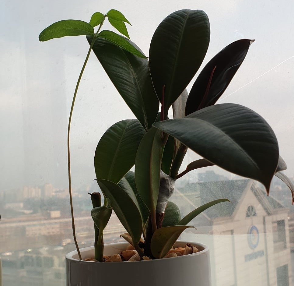 실내에서 키운 화분에서 알 수 없는 새싹이 돋았다.