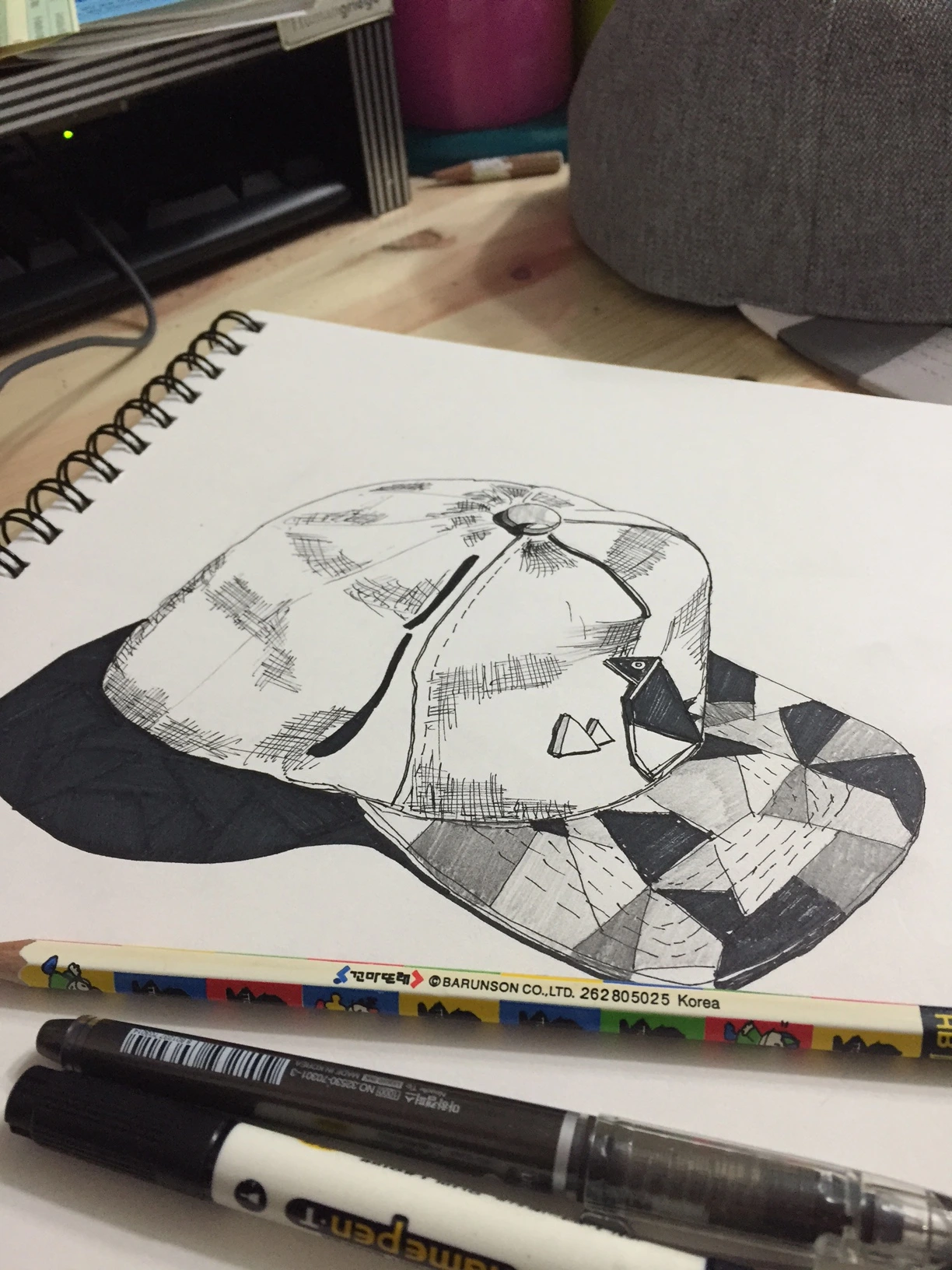 네임펜으로 모자챙 부분 색칠해 주기