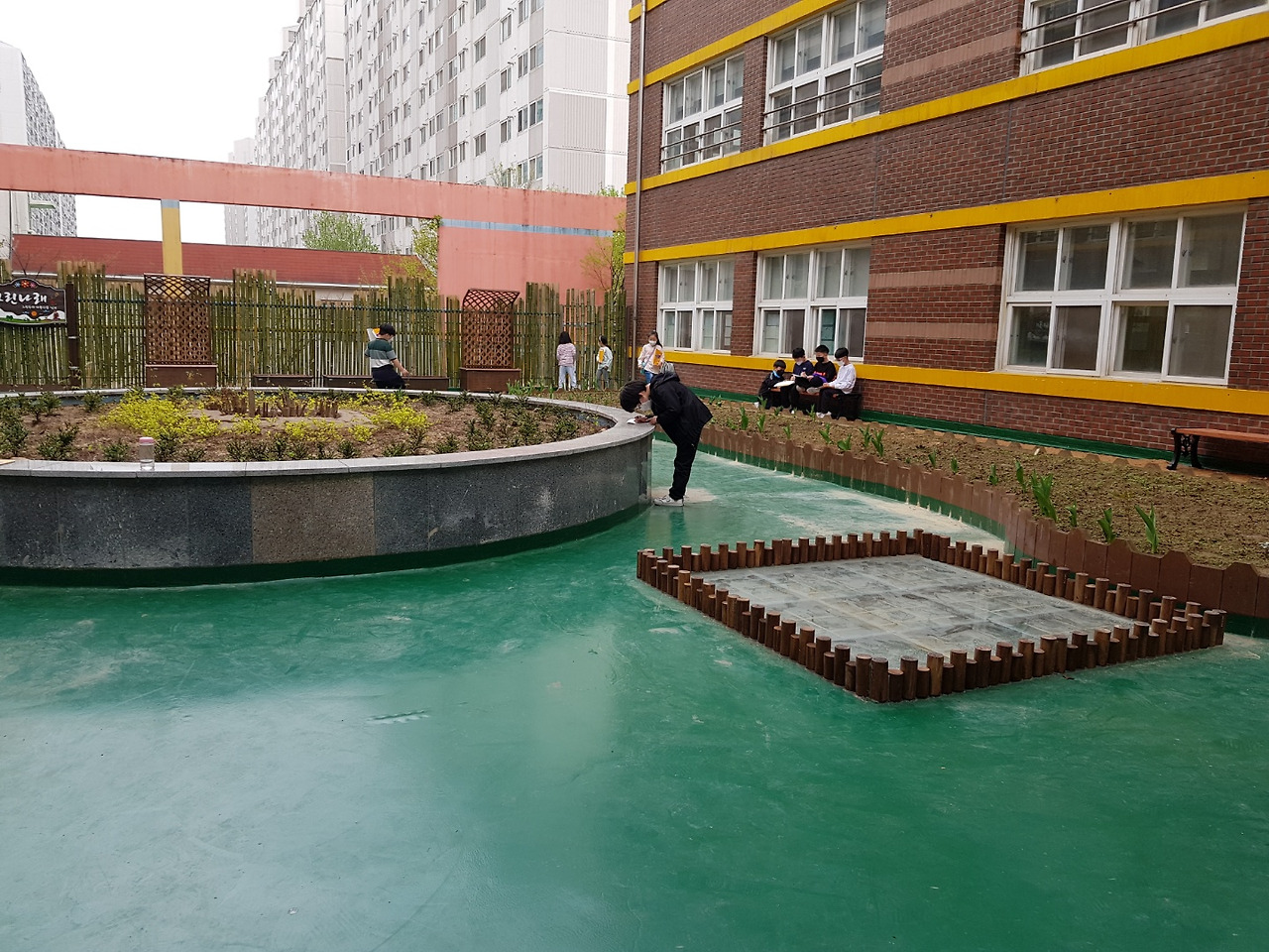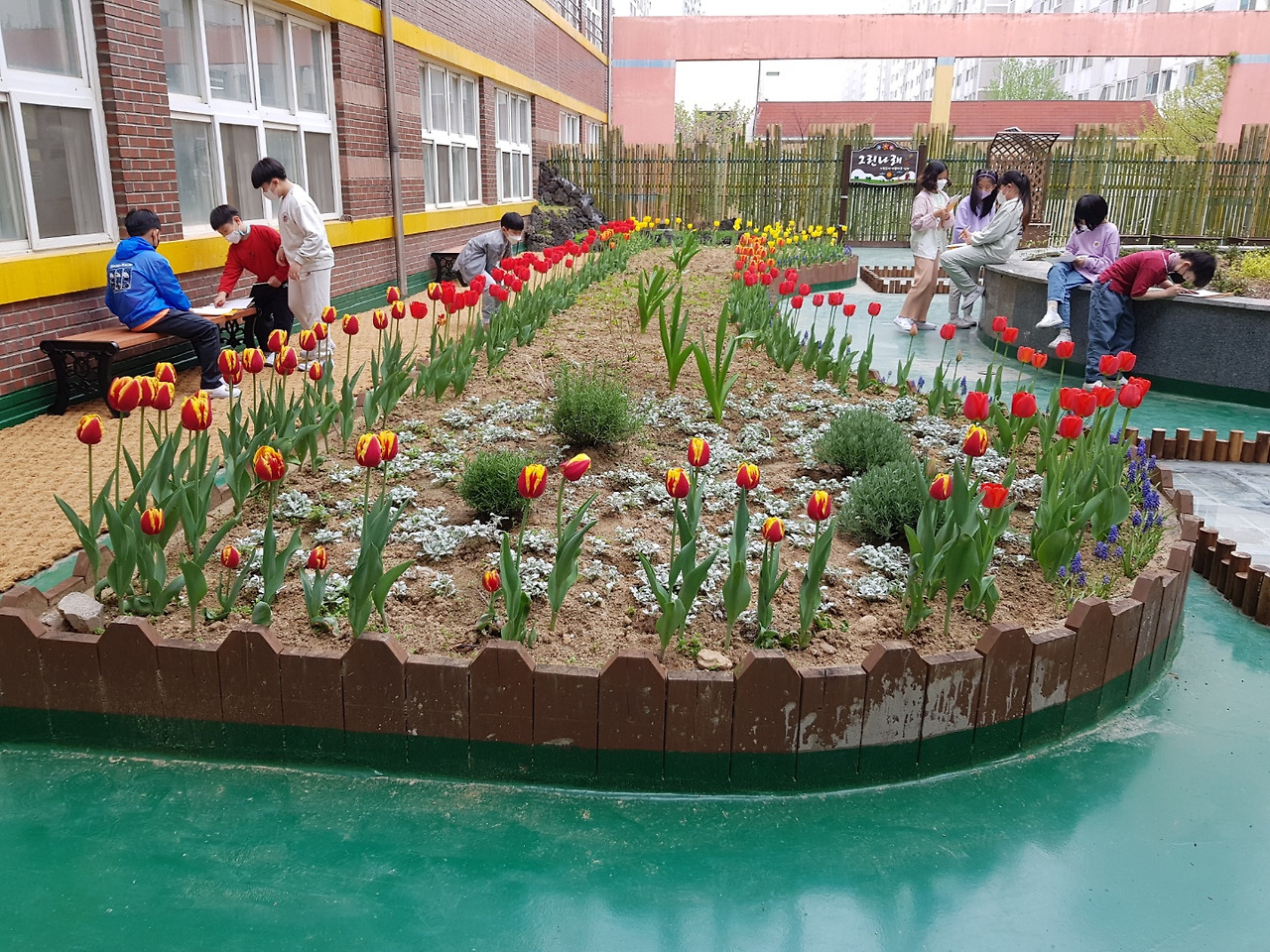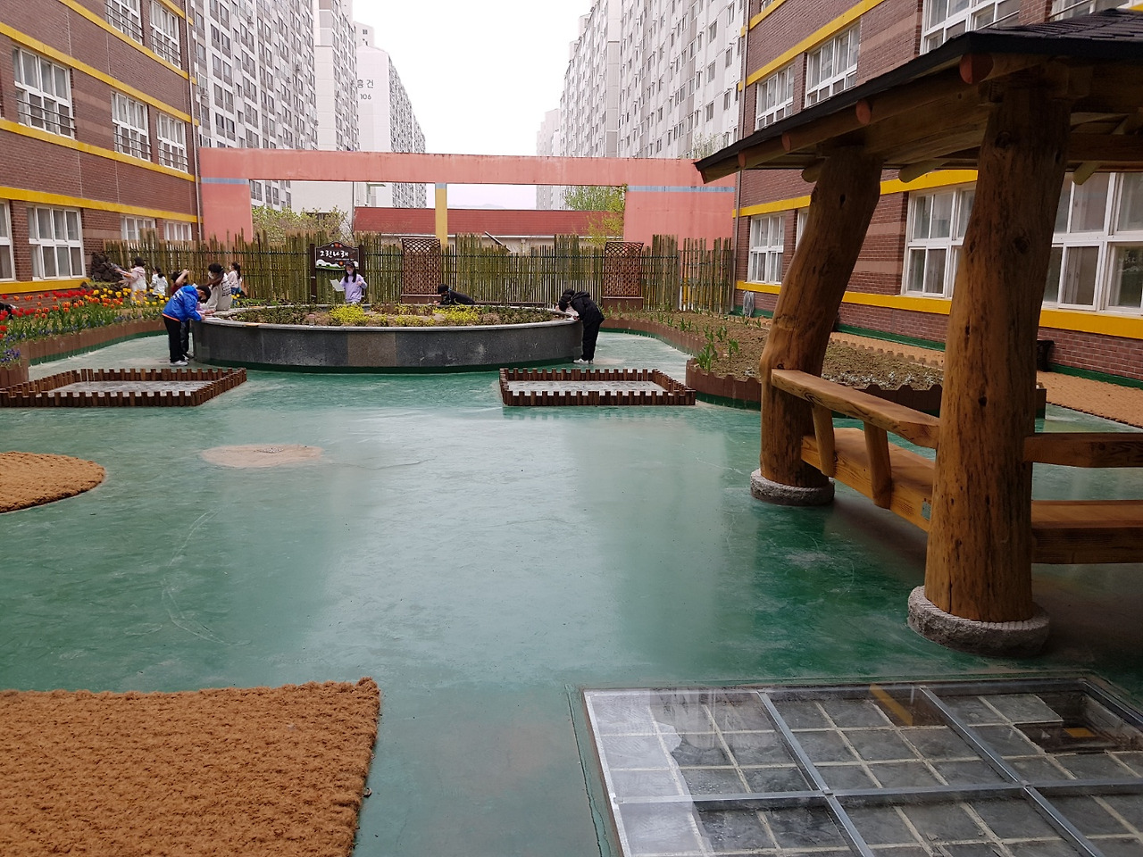올에 예산을 받아서 우리 아이들을 위해 건물 사이를 정원으로 만들었다며 지난 주 오전 내내 교감이 화초 식재작업을 직접 관리하고 마지막 물까지 주는 모습이 보였었다.