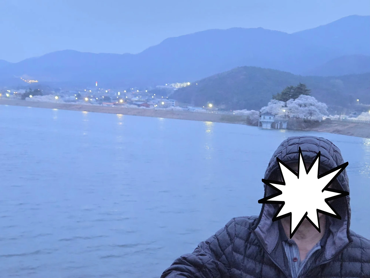 저수지 끝자락에 있는 벤치에 앉아 전면에 펼쳐져 있는 벚꽃들을 감상한 뒤 어둠이 내려 앉은 저수지와 벚꽃, 모악마을을 배경으로 사진을 찍었다. 그리고 모악산 입구로 차를 돌려 올라갔다. 낮에 보면 환상적이었을 풍성한 벚꽃들이 모악산 입구는 물론 모악산 주차장, 도립미술관 앞쪽으로 너무나 아름답게 피었다.