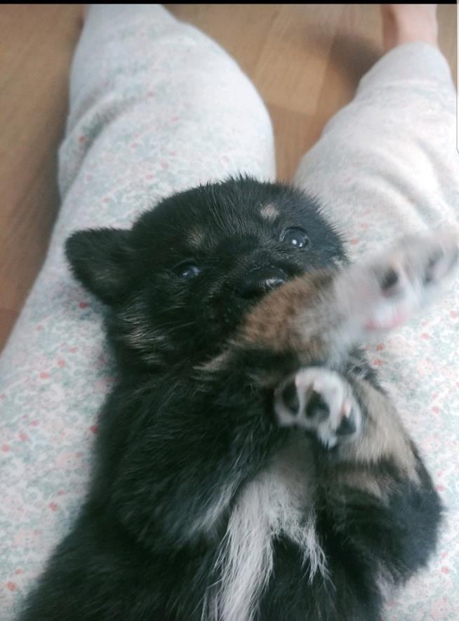 남편은 안되겠다고 생각했는지 코아 혼자서 어미젖을 빨도록 몇 번 배려를 해주자 어미젖의 맛을 알고 난 이후부터는 적극적으로 달려들어 어미젖을 빨기 시작했다. 며칠 동안 어미젖을 빨게 해 준 덕분에 제법 묵직해졌고 다른 강아지들과도 잘 어울려서 노는 모습이 기특했다.