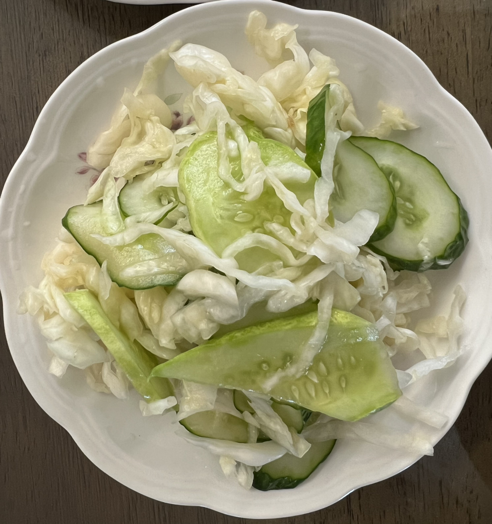 아침은 피곤해서 아무것도 먹지 않고 건너뛰었고, 점심에 양배추 오이 무침을 했다. 냉장고 속에 있던 오이 5개 중에서 가시오이 2개, 백오이 1개를 꺼내고 양배추도 반 통 꺼냈다. 양배추를 채 썰어 씻고, 소금 한 큰 술에 절였다. 오이도 썰자마자 양배추와 함께 절였다. 30분 이내로 절여서 숨이 죽은 양배추와 오이에 식초와 설탕도 한 큰 술 넣었다. 이게 양념의 끝이다. 다른 양념을 넣지 않고 순하게 무쳤다. 샐러드로도 먹고 김을 싸 먹어도 맛있다. 매운 김치가 부담될 때, 김치 대신 집어 먹어도 좋다. 돌나물은 씻어서 헹구자마자 간장, 매실청, 참기름을 한 작은 술씩 뿌렸다. 돌나물 샐러드는 돌김에 밥을 조금 넣고 싸 먹으면 조합이 아주 좋다. 돌김에 돌나물의 알싸한 향, 그리고 소스로 뿌린 간장과 기름이 잘 어우러진다. 두부도 굽지 않고 바로 적당한 크기로 잘라서 식탁을 차렸다. 나에게는 딱 맞는 음식이다. 먹고 나니 속이 편안하다.