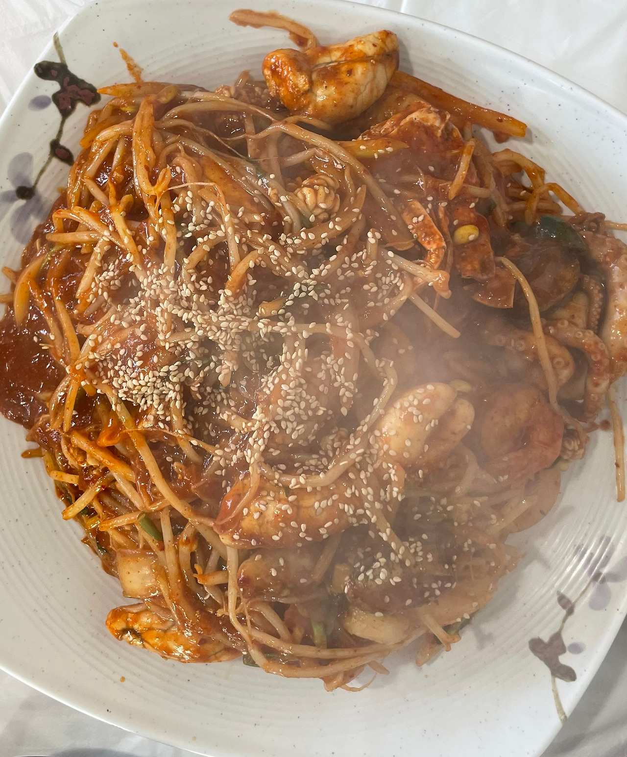 아침에 10킬로 마라톤을 달렸다. 중간중간 걷기도 했지만, 힘이 날 때마다 뛰어서 10킬로를 90분에 들어왔다. 달리고 나서 시장한 김에, 해물찜을 아주 맛있게 먹었다. 10킬로를 처음으로 완주한 기쁨까지 겹쳐지니 자연식물식 반찬을 따지려는 생각은 쏙 들어가고, 오로지 즐거운 마음으로 여러 가지 해물과 콩나물을 맛있게 먹었다. 바깥 음식이라 매울까 봐 걱정했는데 생각보다 맵지 않고 간도 많이 자극적인 편이 아니라 만족스럽게 먹었다. 아침은 사과와 취나물 주먹밥을 감사히 먹었다.