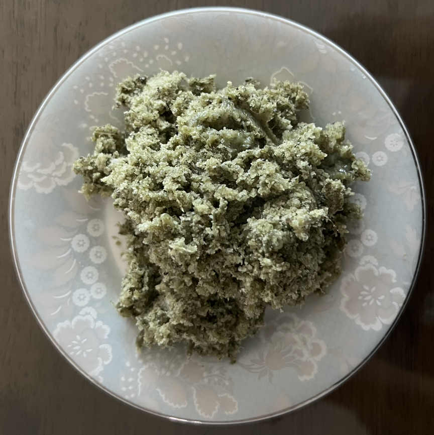 어머니가 봄에 캐어서 냉동실에 보관하던 쑥을 몽땅 넣고 쌀가루를 빻았더니 색감도 좋고 쑥향이 진하다며 몇 봉지나 주셨다. 봄에 주신 쑥쌀가루도 있는데 추가로 세 봉지나 받았으니, 오래된 쑥쌀가루를 빨리 소진하려고 쑥설기를 했다. 사실 개떡보다 만들기 쉬운 떡이 쑥설기다. 모양을 제대로 내려면 손이 가지만 가정에서 뜨거운 기운에 촉촉하고 쫀득한 맛으로 먹을 정도라면 쉽게 만들 수 있다. 냉동실의 쑥쌀가루는 미리 꺼내어 놓고 찬 기운이 없도록 해동한다(찬 기운이 있으면, 시간을 좀 더 잡고 찌면 된다). 냄비에 물을 받은 다음, 촘촘한 삼발이 채반을 놓고, 채반 위에 해동한 쑥쌀가루를 고르게 올린다. 좀 더 빨리 익히려면 가운데를 좀 눌러서 살짝 비운다. 뚜껑을 덮고 센 불에 찌다가 끓어오르면, 중약불에서 20분 이상 찐다. 그리고 10분 정도 뜸을 들이면 쑥설기 완성이다. 따로 모양을 잡지 않았으니 쑥버무리 같은 비주얼이 나오지만 집에서 간식으로 먹는 용도로는 손색이 없다. 방앗간에서 빻아온 습식 쌀가루는 냉동실에 한참을 두고 사용해도 따로 물주기(쌀가루를 손에 쥐었을 때, 손자국이 남을 정도로 수분을 더하는 일)를 하지 않아도 떡이 잘 만들어진다. 방앗간에서 기본 간을 해서 주기 때문에 따로 소금 간을 하지 않아도 된다. 달게 먹으려면 설탕을 넣어 찌거나, 다 된 쑥설기 위에 꿀을 곁들여도 되지만, 바로 찐 쑥설기는 뜨끈하니 맛있어서 설탕을 더하지 않아도 몇 번이나 가져다 먹을 맛이다.