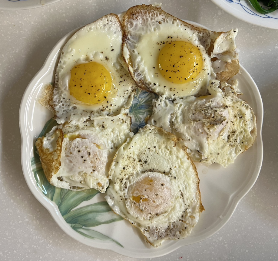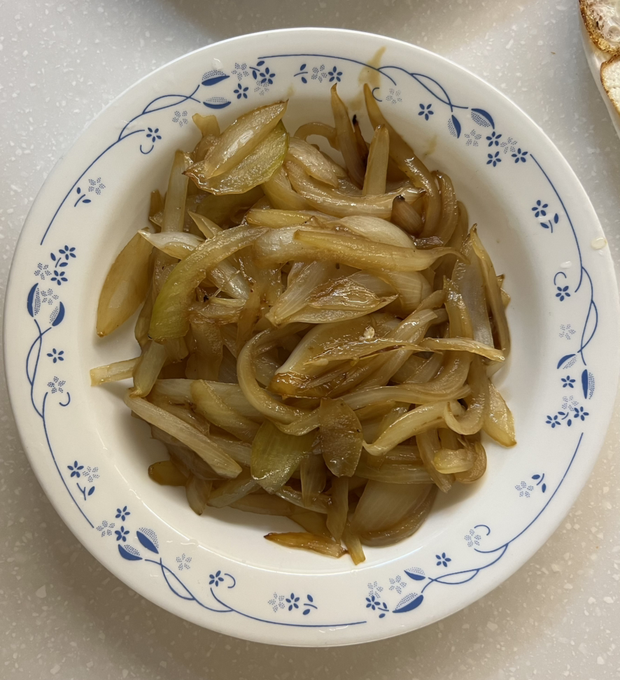 프라이팬에 기름을 두르고 달걀을 다섯 개 부쳤다. 몇 개는 반숙으로 하고, 몇 개는 뒤집어서 흰자는 완숙, 노른자만 반숙 상태로 두었다. 달걀을 부친 팬에 양파 두 개를 길쭉하게 잘라서 볶았다. 양파에 노릇한 기운이 돌면, 간장과 올리고당을 넣고 볶는다. 비빔밥에는 된장국이 어울리니 배추 된장국도 끓였다. 육수를 내지 못하고 급히 끓일 때에는 물에 다시마와 건새우를 같이 넣고 끓이면 좋다. 마침 배추도 있으니 (작은 사이즈의) 배추 겉잎을 9장 떼어서 씻고, 적당한 크기로 쭉쭉 잘라서 넣어 푹푹 끓였다. 5분 정도 끓이다가 된장 한 큰 술을 넣고 약불에서 15분 이상 더 끓이면 완성이다. 부족한 간은 멸치액젓으로 했다.