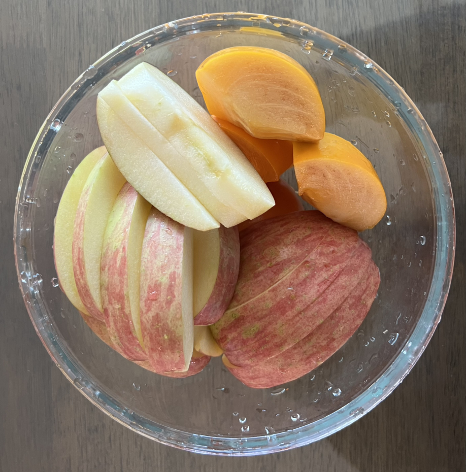 추석에 들어온 냉동 갈비가 아직도 냉동실의 자리를 차지하고 있어서 점심에 구웠다. 자연식물식(채소, 과일, 통곡물 위주의 식사를 하는 것)을 하고 있으니 가족들만 주려고 구웠는데 생각보다 맛있게 느껴져서 대여섯 점은 먹었다. 기름기가 워낙 많고 짠 음식이라 한참 동안 목이 말랐다. 주말 아침에는 과일을 통에 많이 잘라두면 가족들이 오가며 편하게 집어먹기 좋다.