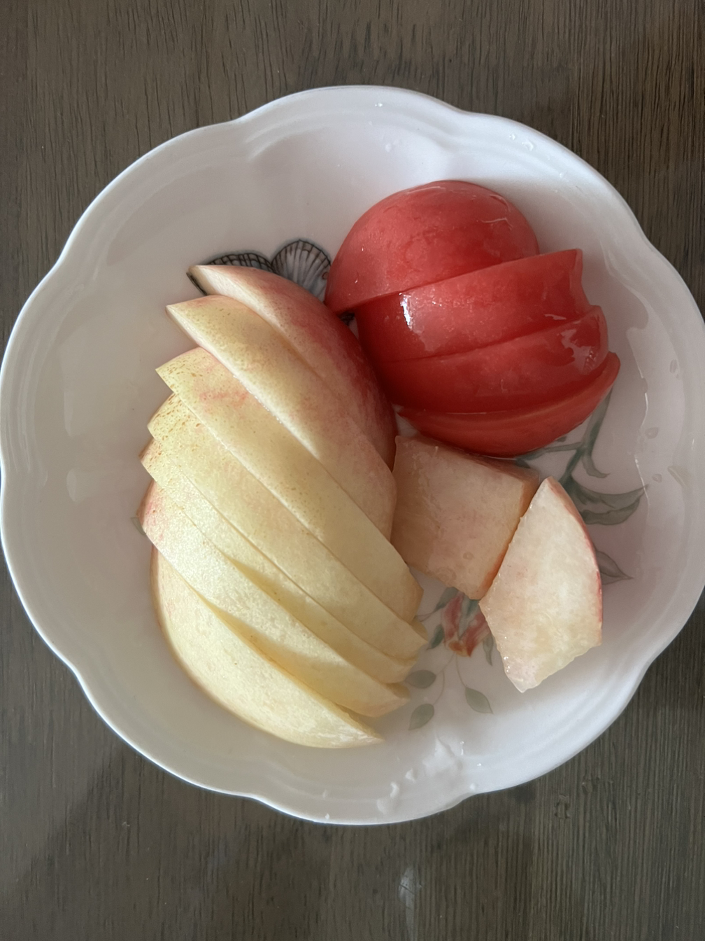 아침에는 복숭아와 토마토를 먹었다. 아이가 방학을 해서 아이도 함께 아침 과일을 먹게 되고, 자연스럽게 자연식물식을 공유할 수 있다. 아이들 방학 기간과 자연식물식 기간이 겹치니 좋기도 하다. 점심에는 적양배추와 양파를 무쳤다. 백김치처럼 고춧가루를 사용하지 않았다. 적양배추를 적당한 크기로 잘라서 소금에 버무려 두고 양파를 비슷한 크기로 잘라서 절인 적양배추와 섞었다. 여기에 식초 한 큰 술, 설탕 두 큰 술을 넣고 버무렸다. 소금만 넣고 사우어크라우트를 만들어서 발효시켜 먹어도 좋지만, 바로 먹을 거라 식초와 설탕을 가미했다. 냉장고에서 숙성시키면서 먹으려고 넉넉하게 무쳤다. 아이 반찬으로는 달걀 숙주 볶음을 했다. 기름 두른 팬에 달걀 두 알을 익히다가 숙주, 간장, 설탕을 넣고 한 번 더 볶았다. 저녁에는 부침개를 해주려다가 시간을 깜빡 놓쳐버려서 급하게 달걀 프라이를 해 주고 미역국과 김, 채소 반찬을 꺼내 주었다. 쑥쌀가루가 냉동실에 한 봉지 남아 있어서 간식으로 쑥개떡을 만들어서 단팥과 곁들였다. 어머니가 가져다 주신 쑥쌀가루가 많아서 봄과 여름 내내 쑥떡을 실컷 해 먹고 있다. 자연식물식 전에는 밖에서 사 먹는 간식을 좋아했으니, 냉동실의 식재료가 부담스럽기만 했는데, 이제는 냉동실의 식재료를 충분히 사용하고 있다.