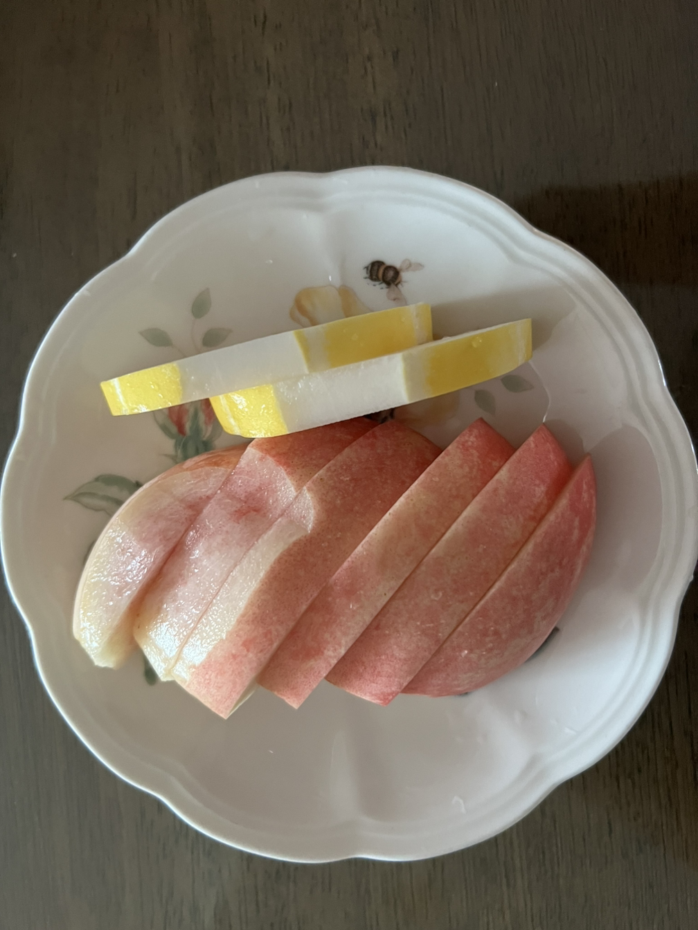 오늘도 아침은 과일, 복숭아와 참외를 깎았다. 점심에는 첫째 아이가 좋아하는 감자전을 했다. 제철 감자는 무얼 해도 맛있고, 감자전은 언제 해도 맛있다. 감자를 썰어서 굵은소금과 같이 갈았다. 우리 집 믹서기는 물이 조금 들어가야 감자가 갈린다. 물을 조금 붓고 감자 1킬로 남짓을 조금씩 넣어가며 갈았다. 갈아진 감자는 체반에 받쳐서 물을 빼고 부쳐도 되는데, 오늘은 물을 빼는 과정을 생략하고, 농도를 맞추기 위해 감자 전분을 추가했다. 쌀가루나 찹쌀가루로 농도를 맞추어도 좋은데, 오늘은 쫄깃한 감자전을 만들려고 감자 전분을 넣었다. 갈아 놓은 감자 양이 많아서 감자 전분을 150그램 정도나 넣었다. 반죽이 되직해지는 느낌은 별로 없었는데 부치니까 점성이 상당하다. 쌀가루나 찹쌀가루를 넣으면 반죽은 금세 되직해지지만, 부칠 때에는 조심스러울 정도로 부드러운 것과는 사뭇 다르다. 감자전은 불조절만 잘하면 성공이다. 기름을 살짝 두르고(기름을 많이 두르고 튀기듯이 구워도 색다른 맛이 있다) 센 불에서 2분 정도 굽고, 뒤집어서 또 2분 정도 센 불에서 굽는다. 이후에는 약불에 오래오래 구울수록 색도 나고 맛도 좋다. 미리 만들어둔 적양배추양파무침이 있어서 초간장과 함께 곁들였다.