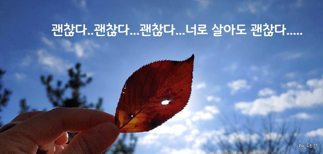 나는 사진 찍는 것을 참 좋아한다. 예쁜 풍경이 있으면 차를 세우고 그곳을 둘러 보기도 하고 퇴근길 좋아하는 동네 공원을 한 바퀴 돌면서 꽃과 나무 바람의 소리를 느끼기도 하며 햇살이 주는 코모레비를 만나기도 한다. '코모레비'란 나뭇잎 사이로 비치는 햇빛을 말한다. 하늘을 바라보며 코모레비를 만나면 생각나는 글들이 떠오른다. 자연이 나에게 주는 풍성한 영감을 내가 다 담아내지 못하고 글로 표현하지 못해서 속상할 때가 있지만 자연을 만나서 사진을 찍는 나의 루틴을 나는 사랑한다. 사진을 보면서 그때 그 감정과 생각을 때때마다 짧은 글로 써놓기도 해서 어느 날 한 권의 책으로 엮어봐도 좋을 것 같다는 생각이 든다. "오늘도 나는 글을 쓰고 있다. "