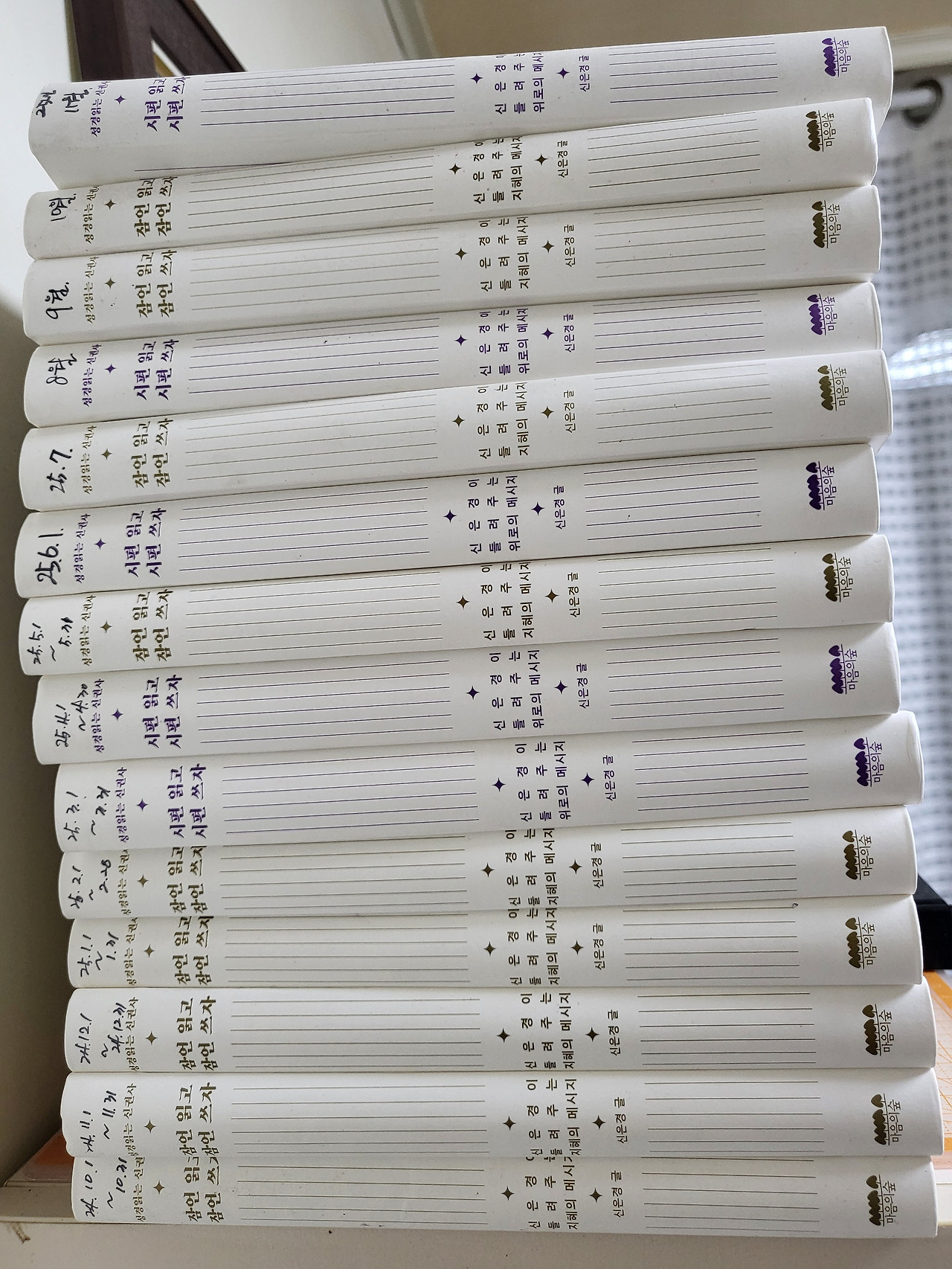 권사님께 연락을 하고 함께 할 필사단을 모집하면 어떻겠냐는 제안을 했다. 그리고 10월 50명의 필사 단과 함께 1기 시편 필사를 시작을 했다. 그 후로 올 12월까지 12권의 필사 책이 완성이 되었다.