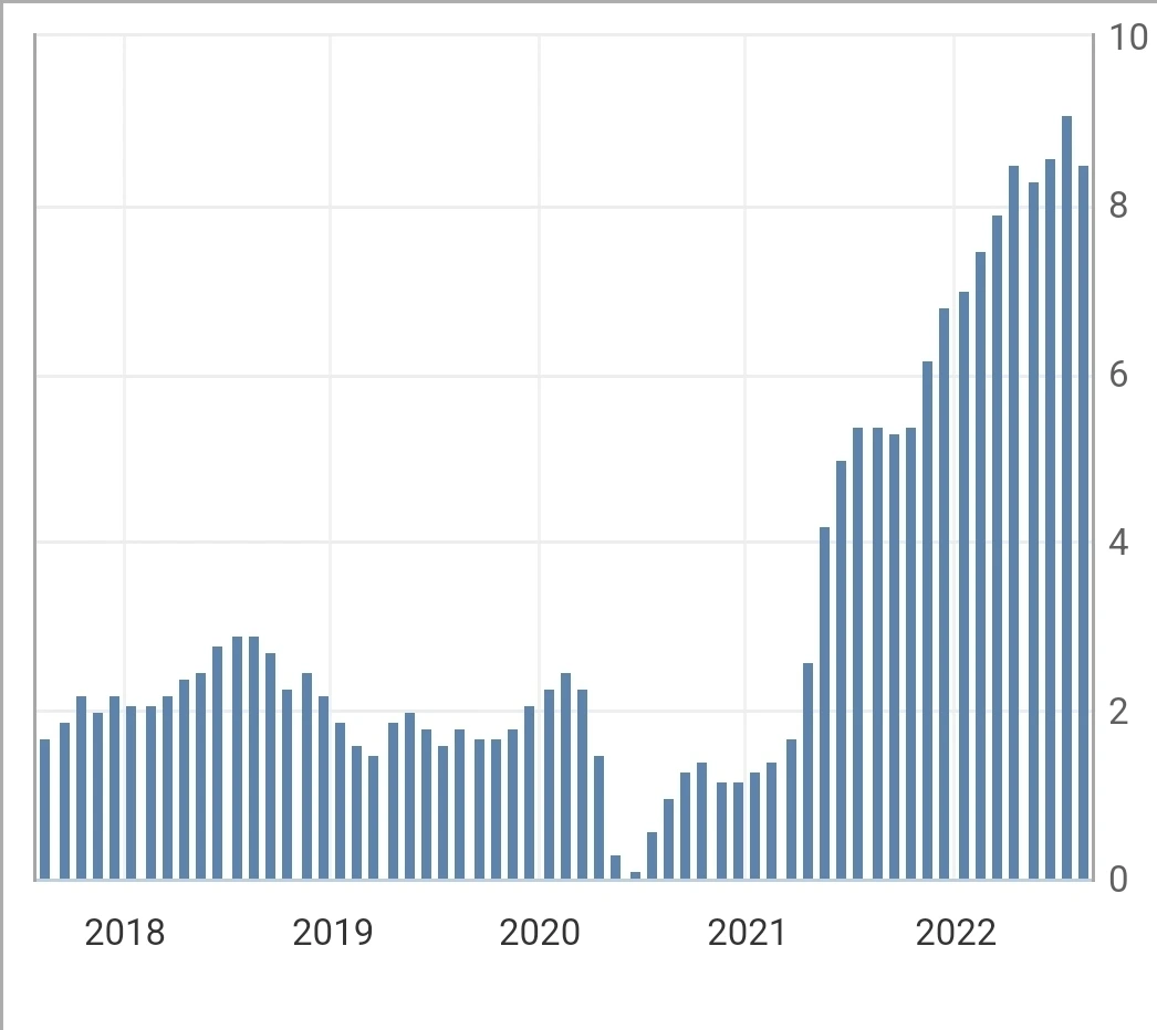 22년 7월 기준으로 8.5%라는 물가 수치는 여전히 한참 높은 수준이지만 상승의 기울기가 조금은 완만해진 것처럼 보인다. 우리는 물가가 언제 안정이 되고 다시 금리가 내려갈지 알 수가 없다. 현재는 높아진 금리가 부동산, 주식 등의 자산가격에 좋지 않은 영향을 끼치고 있다는 것만 알고 있다.