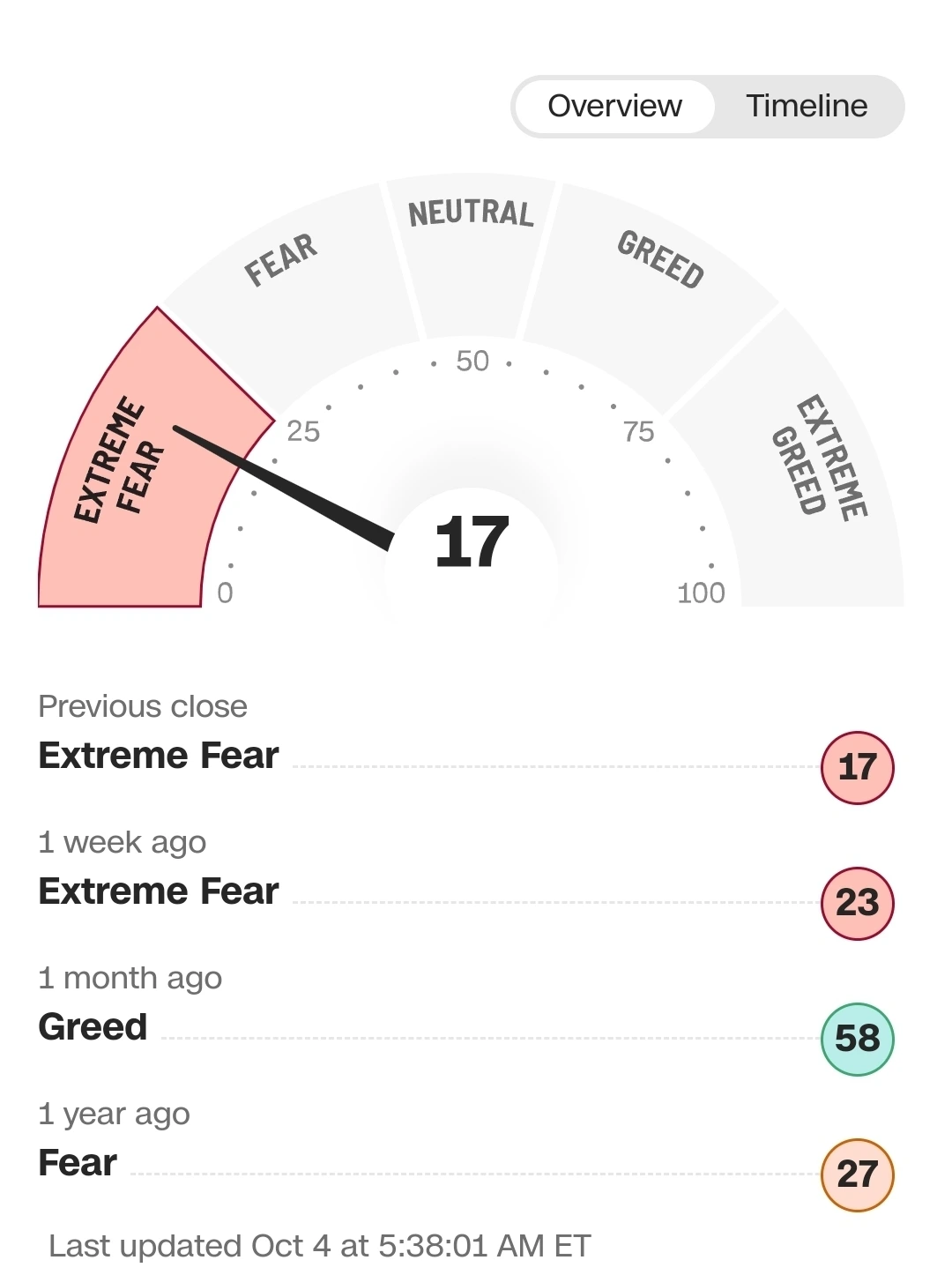 미국 CNN의 공포, 탐욕지수