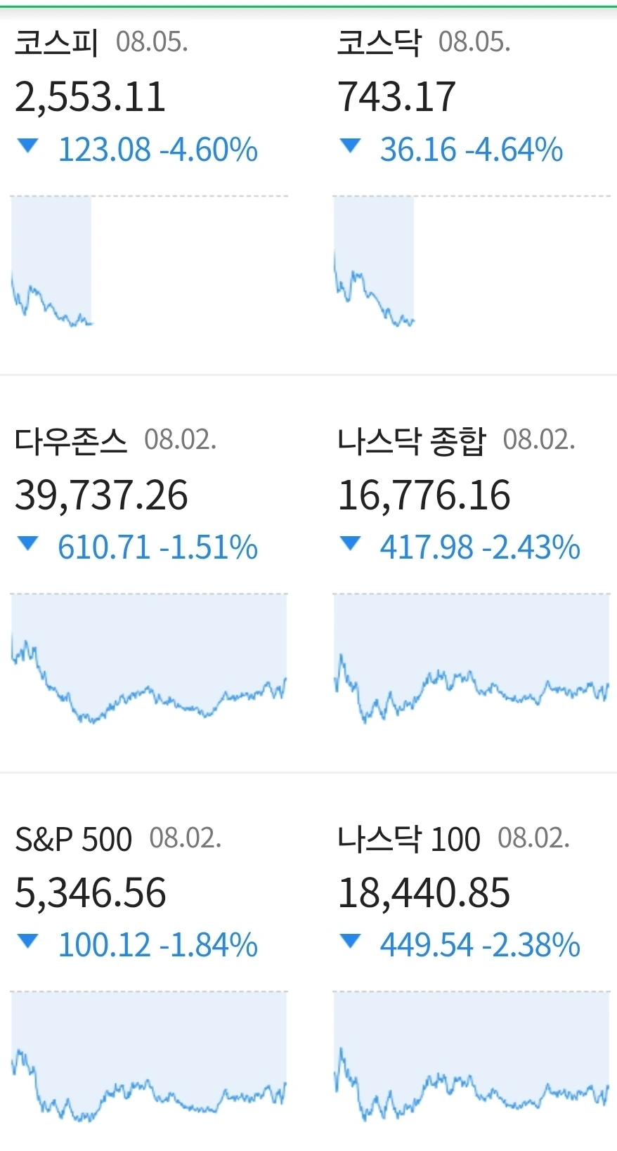 증시가 급락했다는 기사를 발견했다.