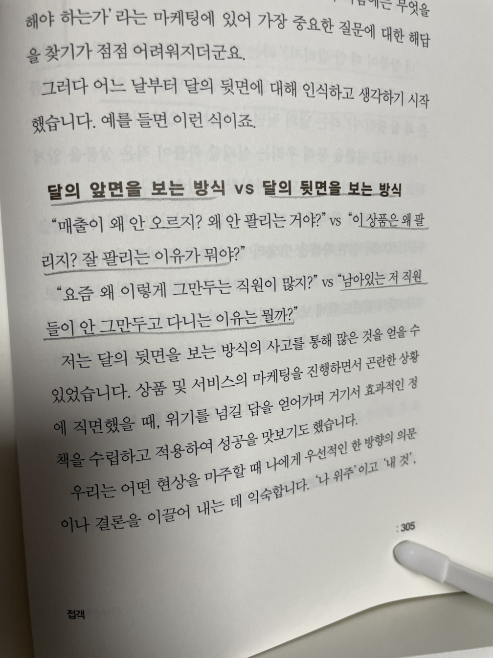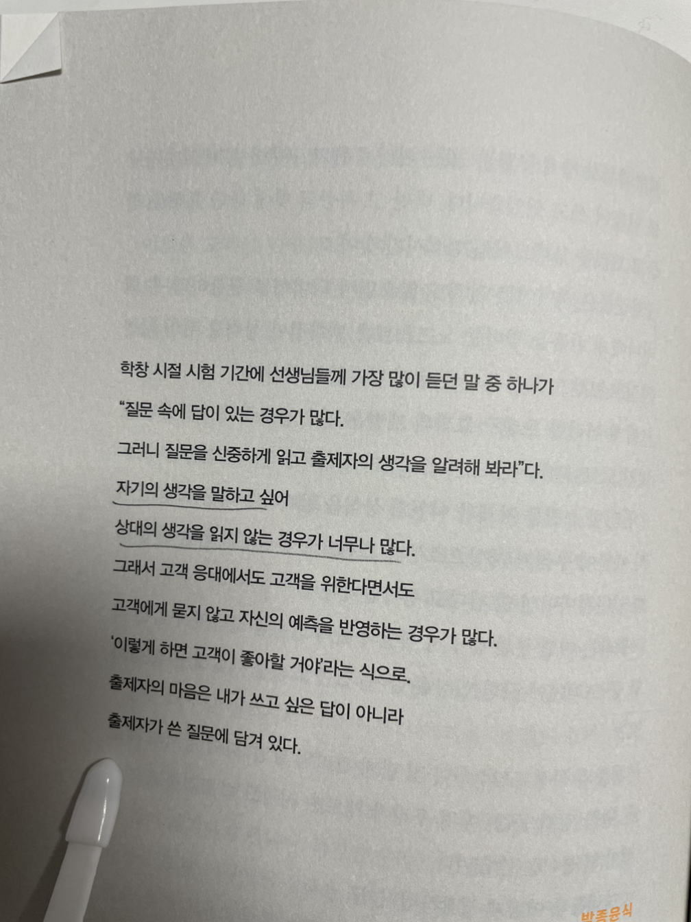 비유부터 흥미로웠습니다. 제 일에 꼭 필요한 통찰이기도 하죠. 보이는 부문에만 집중하는 게 아닌, 보이지 않는 부분도 일부러 봐야겠습니다. 질문도 바꿔가면서요. 전에 배운 하브루타를 접목하기 적합한 부분이기도 하죠.