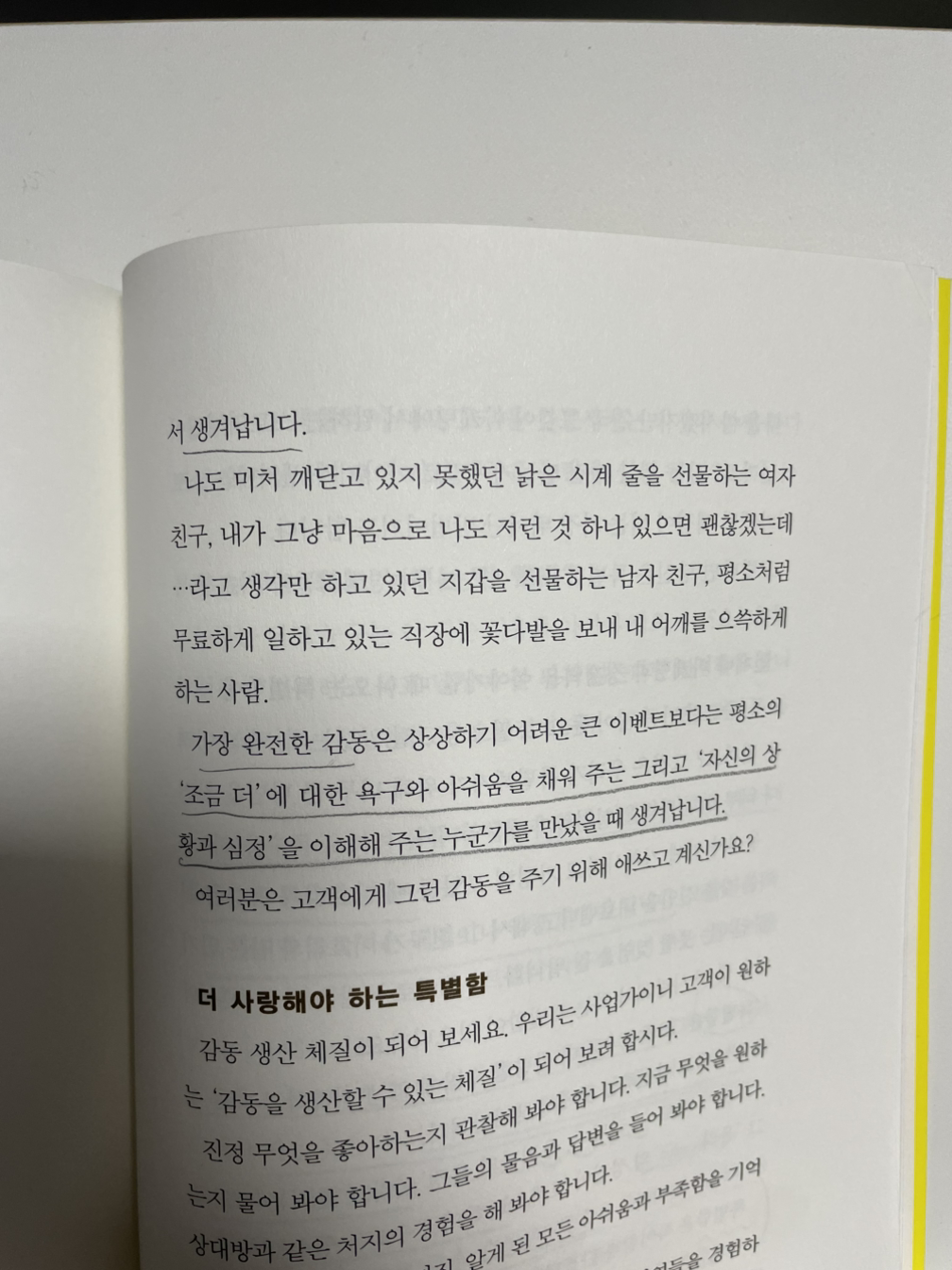 그때 그 고객님이 생각나면서, 잠시나마 잊고 있던 감동 포인트를 다시 떠올렸습니다.