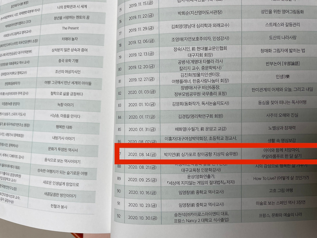 2020년 8월 14일 여름.'아이와 함께 동남아 한 달 살기 프로그램'으로 강연했어요.