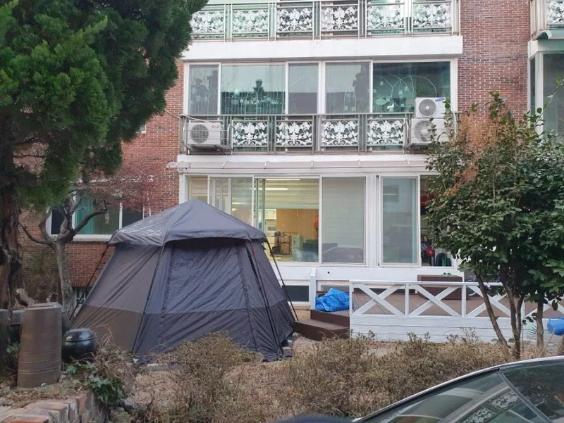 첫째가 초등학교에 입학한 후, 새로운 곳으로 이사 가고 싶은 마음이 수시로 꿈틀댔다. 둘째 아이 초등 입학을 앞둔 몇 달 전, 마음은 결심으로 변했다. 아이들 학교와 학원이 인접한 곳 위주로 정했다. 문제는, 또다시 1층에 살 것이냐, 아니냐였다. 아이들 의견에 따라 1층으로 정하니, 그때처럼 선택할 수 있는 옵션이 거의 없었다. 한 달 뒤, 땅과 붙어있는 1층으로 이사했다. 이번 집은 오래된 빌라이지만, 지하실과 화단이 있다. 날씨와 계절에 상관없이 지하에서 공놀이하고, 화단에 있는 텐트에서 홈 캠핑을 즐긴다. 온갖 벌레, 곤충, 길 고양이 출현도 커버할 만큼 아들을 키우기에 적합한 환경을 갖춘 곳이라 여전히 층간 소음 고민과는 먼 거리를 유지하고 있다.