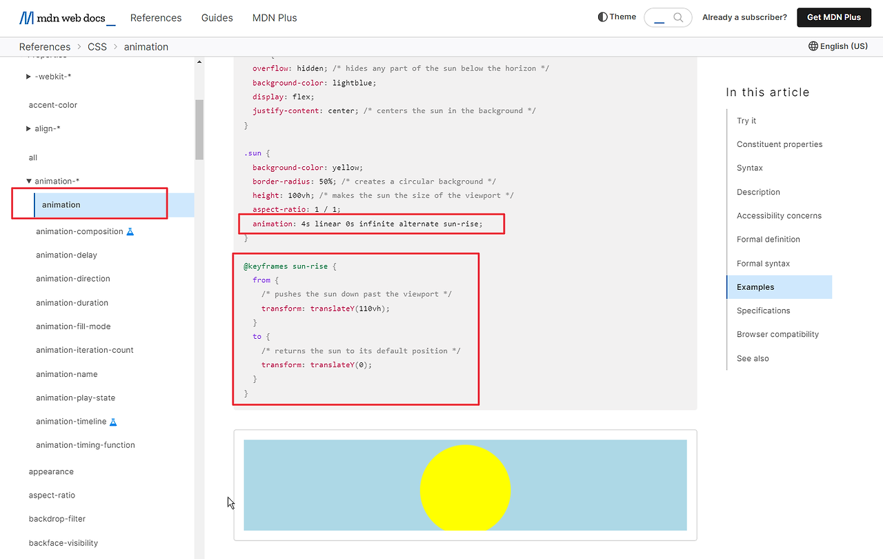 element라는 이름의 클래스를 가진 요소에 애니메이션으로 키프레임으로 정의한 동작을 표시하도록 함.
