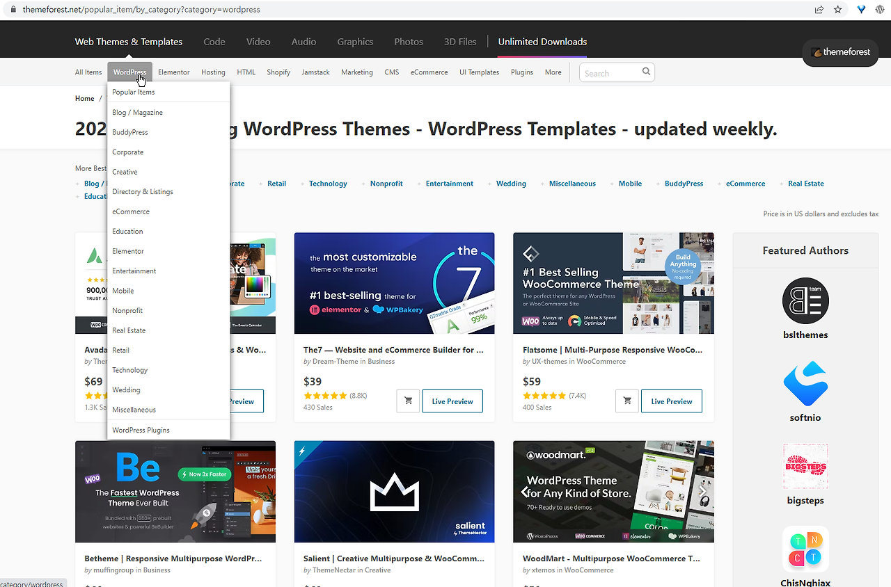 워드프레스는 테마 시장이 존재합니다. 그래서 디자인 준비를 테마를 선택하는 것으로 대체하는 경우도 있습니다. 내 사이트의 목적이나 콘텐츠에 맞는 테마를 결과물을 보고 구매 후 설치하면 바로 쓸 수 있는 장점이 있습니다. (예: Themeforest)