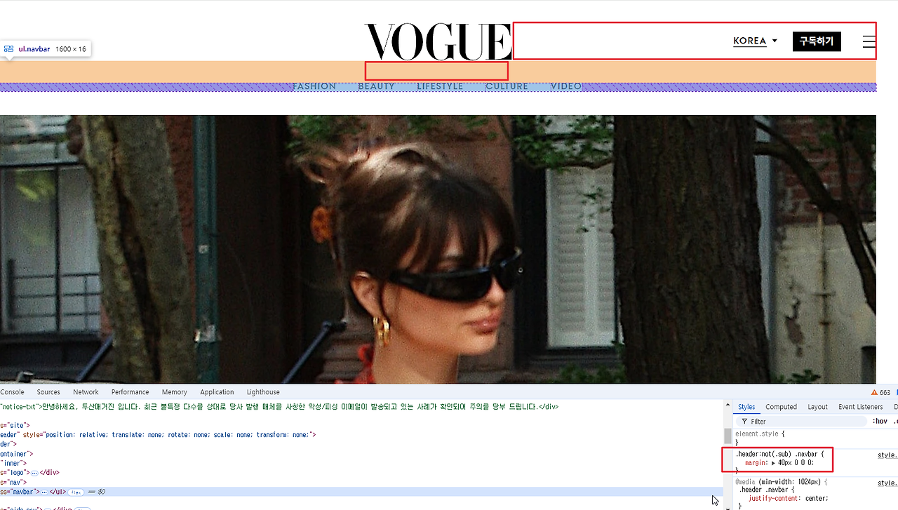 참고 사이트의 헤더를 먼저 확인해 보겠습니다. 두 가지 모양의 헤더가 있는데, 하나는 메인 페이지에서만 표시되는 로고가 가운데 있는 헤더이고, 그 외 나머지 페이지나 목록 템플릿 페이지에서는 로고가 왼쪽에 있는 헤더입니다. 즉, 헤더를 2개 준비를 해야 합니다.