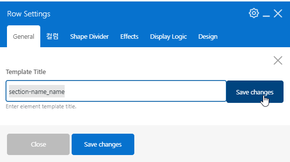 알아보기 쉬운 이름을 넣어서 저장하면, 선택한 섹션과 그 안에 있는 내용 전체가 하나의 템플릿으로 만들어지게 됩니다.