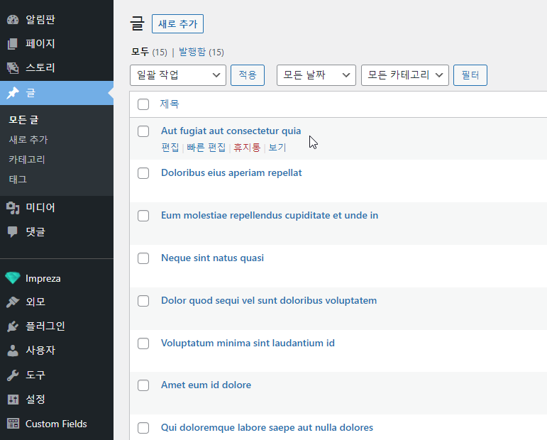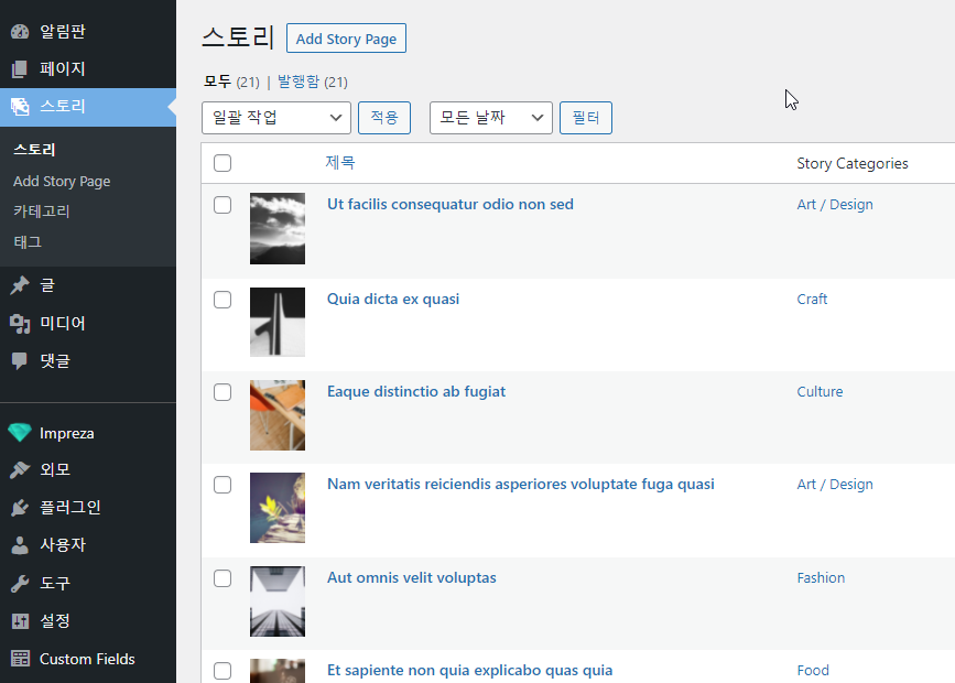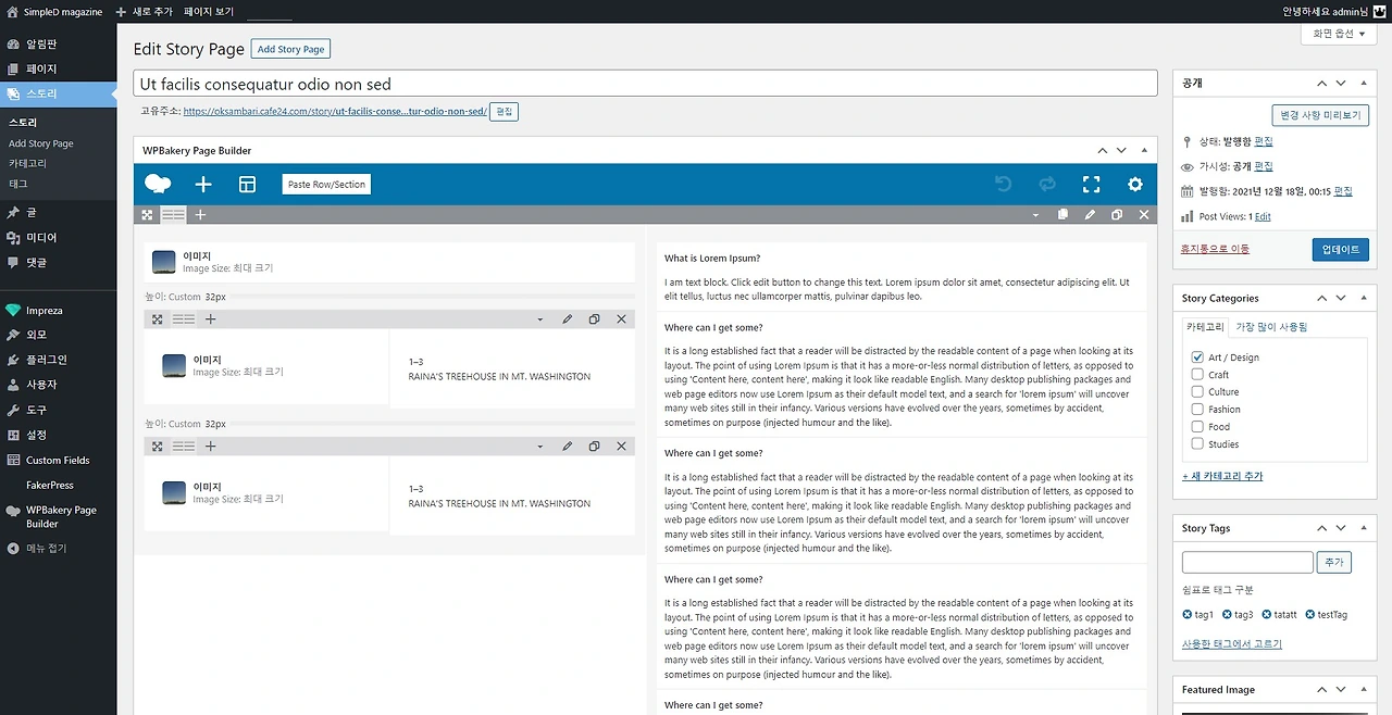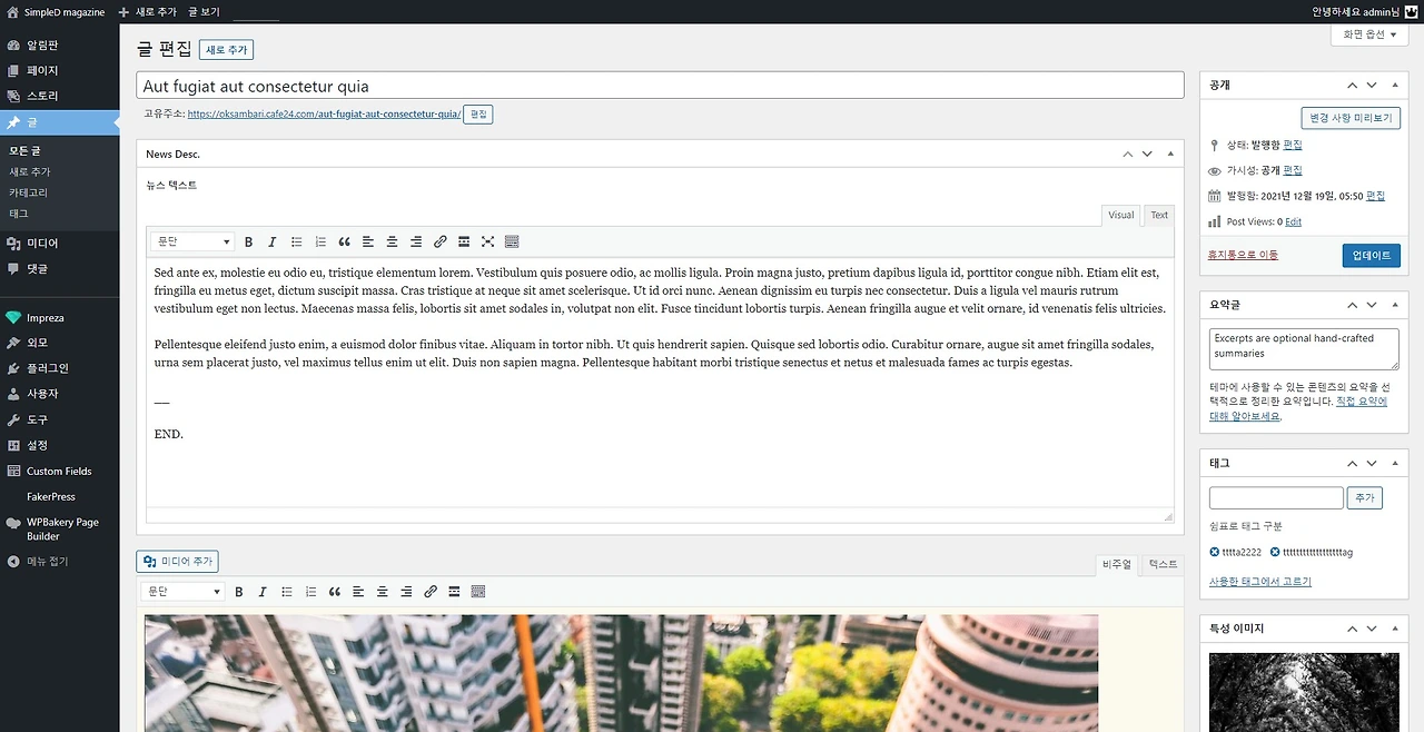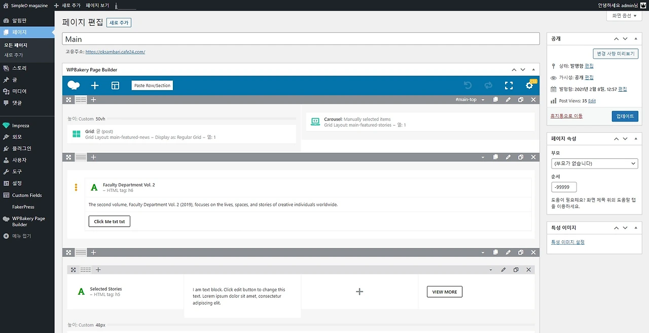 각 콘텐츠는 종류에 따라 편집하는 방식, 분류도 각각 다르게 적용하여 어드민을 활용할 수도 있습니다. 과거 웹 어드민들을 사용했던 경험을 토대로 볼 때 저는 페이지 빌더가 있는 것이 훨씬 활용도가 높다는 생각을 가지고 있습니다. 없으면 워드프레스 기본 편집기로 html 요소를 직접 적거나, 워드프레스에서 제공하는 페이지 템플릿 제작 방식을 활용해서 페이지를 제작해야 합니다. 글은 글대로 간편하고 쉽게 편집할 수 있게 하고, 페이지는 html과 css, js를 조합해야 결과를 만들 수 있는 것보다는 빌더를 가지고 조금 더 쉽게 관리를 하는 게 더 좋았던 것 같습니다.