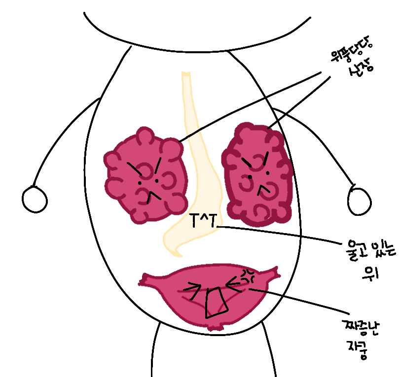 생각해 보면 한 달 전에 분명히 비슷한 과정을 겪었다. 조금 과식 했고,-여기서 과식은 20대 시절의 과식과는 차원이 다르다. 20대가 T.O.P라면 지금은 물 탄 아메리카노다- 그날 밤 통증 때문에 괴로워 잠을 못 자서 이제는 뭘 먹든 한 끼니에 국그릇 1그릇 이상의 양은 먹지 않아야겠다고 다짐했다. 한동안 그걸 지켰는데 안 아프니까 까먹는다. 과식 안 하고 꼬박꼬박 먹다 보니까 아팠던 날을 까먹고 찜닭 앞에 앞접시 하나만 들고 앉아서 좋다고 찜닭 한 조각, 당면 한 줄, 치즈 한 덩이, 입에 순풍순풍 집어넣었다.