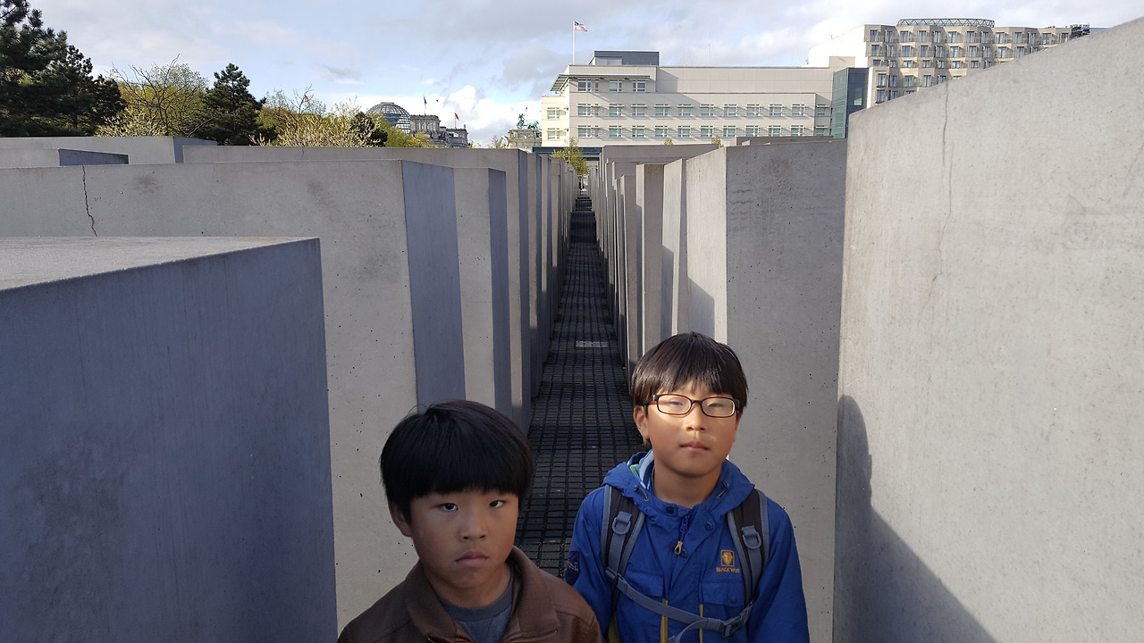 걸어가는 도중, 2차 대전에서 희생된 유태인들을 기리기 위한 유태인 추모공원을 만났다. 다양한 형태로 놓인 회백색의 높이와 크기가 다른 네모난 돌들은 마치 시신을 갓 매장한 석관들의 모습과 닮아 있었다. 제법 큰 돌들은 성인 키 만한 거대한 것들도 있어 돌들 사이에 서 있으니 미로 속에 갇혀 버린 것만 같은 기분이 들었다.
