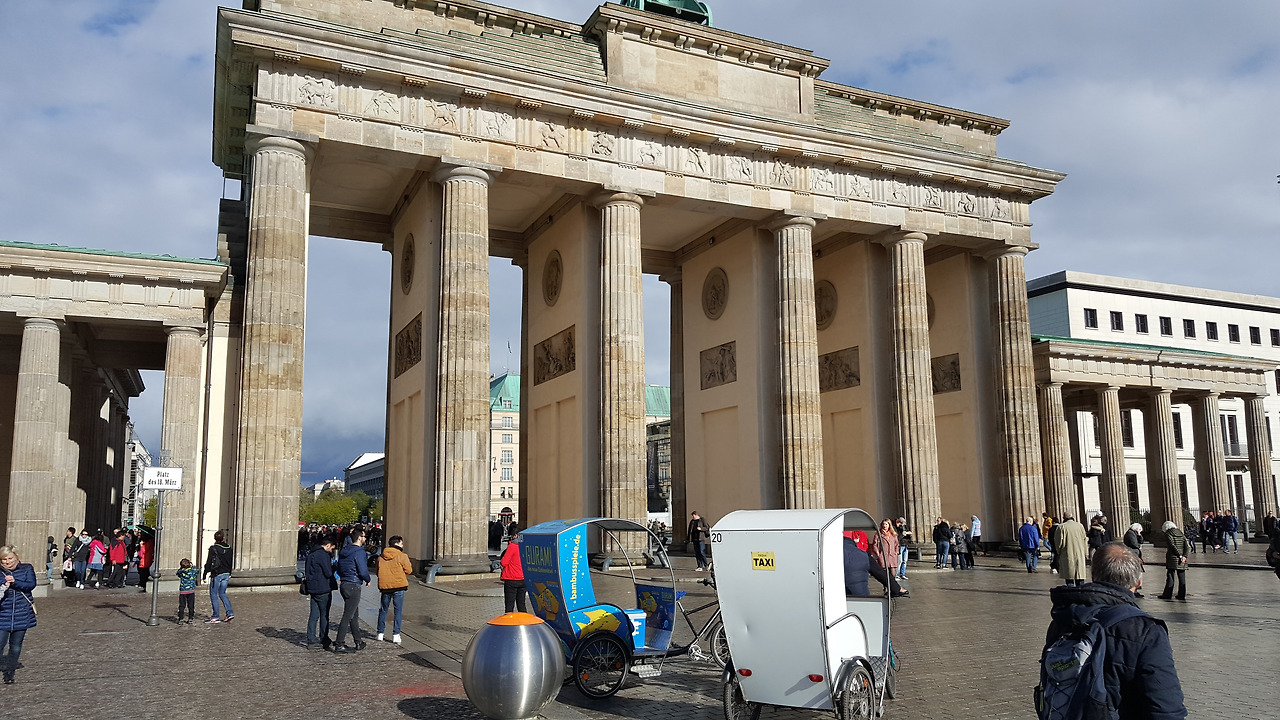 브란덴부르크 문은 독일 제국의 통일을 꿈꾸던 프로이센 시절에 만들어져 베를린 장벽의 출입문으로 사용되었다고 한다. 기구한 운명의 브란덴부르크 문이 한낮의 태양에 아름다운 자태를 뽐내며 위풍당당하게 서 있었다. 그 거대한 크기에 압도된 우리는 거대한 시간의 문을 가만히 통과했다.