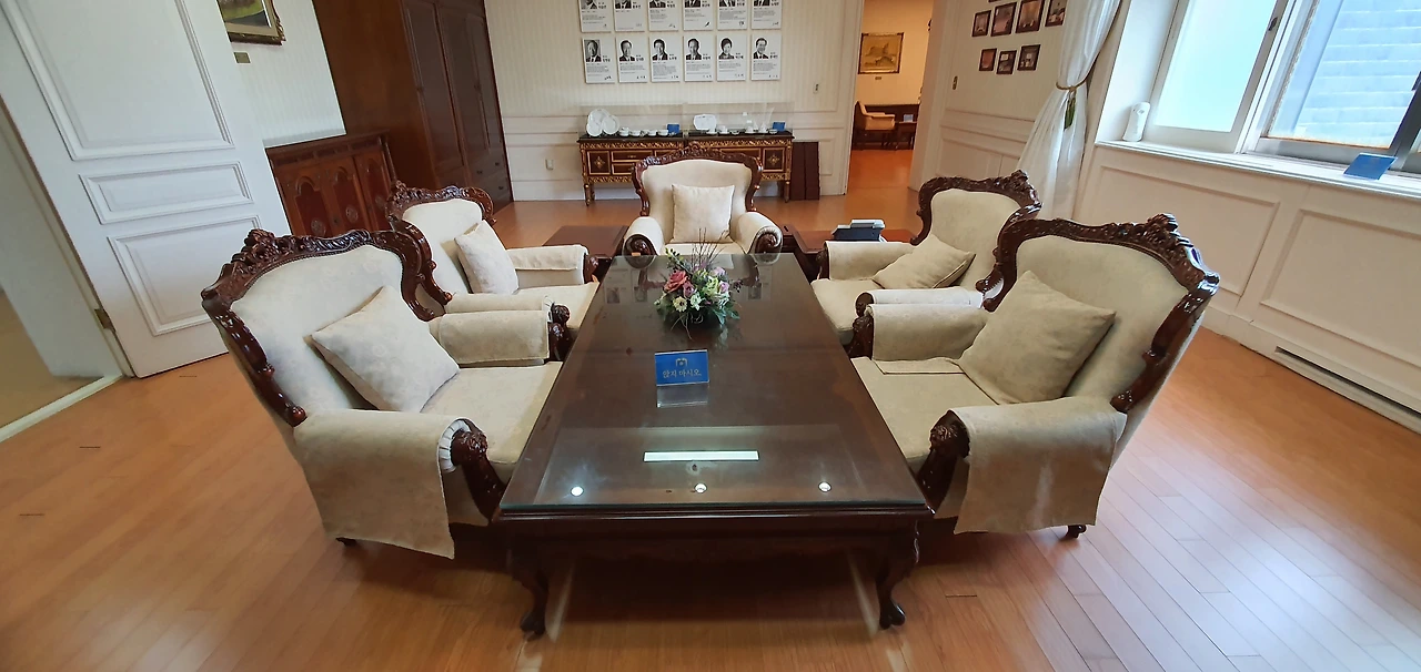 안방(침실)과 거실은 원형을 최대한 살려 대통령 행정박물 전시실로 꾸며 놓았다. 마치, 드라마에 나오는 재벌가의 응접실 같은 느낌이었다. 문득, 어릴 적 보았던 드라마의 몇몇 장면들이 떠올랐다. 권력가 거나 재력가로 등장했던 그들은 저런 자리에 모여 앉아 음침하게 음모를 꾸미거나 살벌하게 재산 다툼을 하곤 했다.
