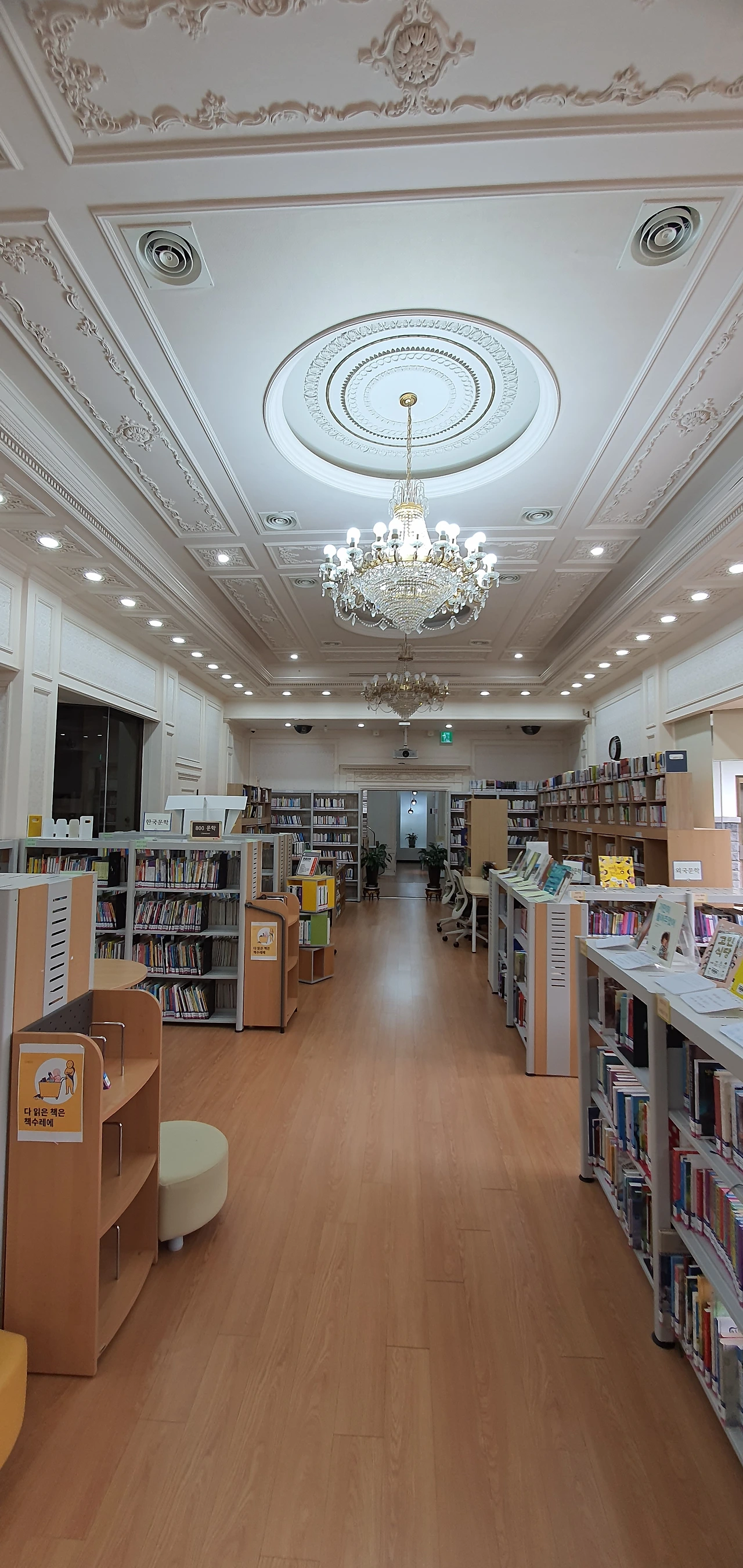 우리나라뿐만 아니라 전 세계를 통틀어 열람실 한가운데에 대통령의 휘장이 걸려있는 곳은 이곳이 유일하지 않을까 싶었다. 어쩌면 이곳을 드나들며 책을 읽는 어린이 중의 누군가는 저 휘장을 보면서 대통령의 꿈을 키우고 있을지도 모를 일이었다.