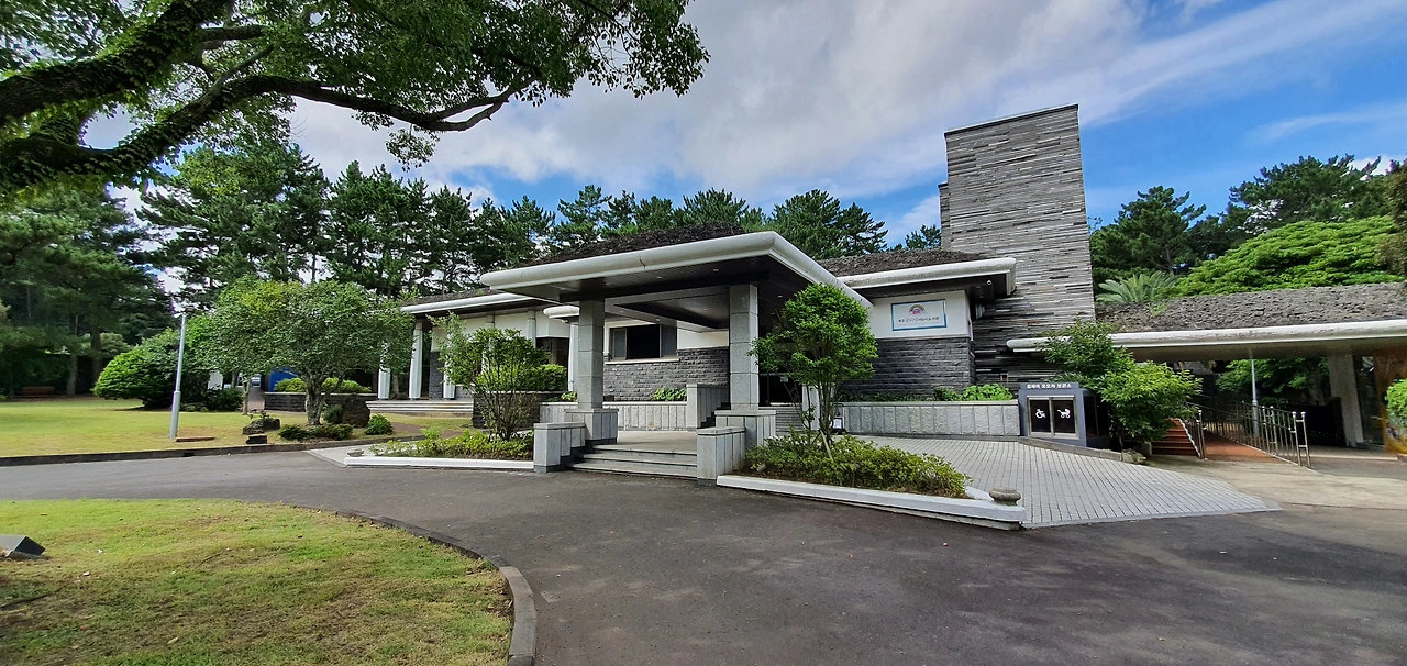 건물의 외관은 제주 전통 가옥의 지붕과 돌담을 형상화한 느낌이다.