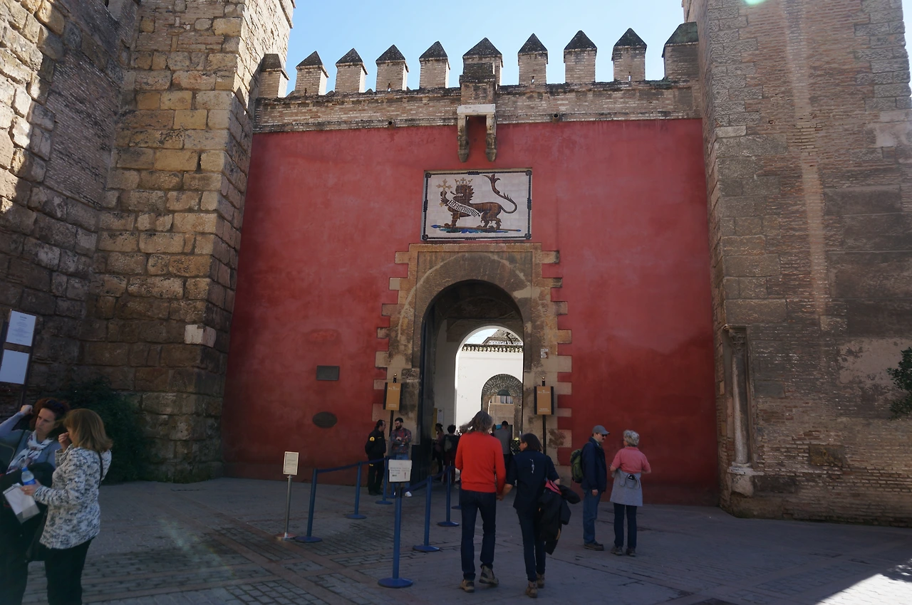 세비야 대성당을 나와 알카사르 궁전으로 향했다. 구글 지도에는 바로 인근의 트리운포 광장을 지나면 나온다고 되어 있었다. 하지만 다시 길치 병이 도진 나는 입구를 찾지 못해 궁전을 가운데 두고 몇 바퀴나 빙빙 돌았다. 한낮의 태양에 얼굴이 벌겋게 달아오를 즈음, 마침내 붉은색을 배경으로 사자 문양이 그려진 ‘사자의 문’을 발견했다. 이렇게 지척에 있는 커다란 문을 이토록 어렵게 찾았다는 사실에 그만 헛웃음이 나오고 말았다.