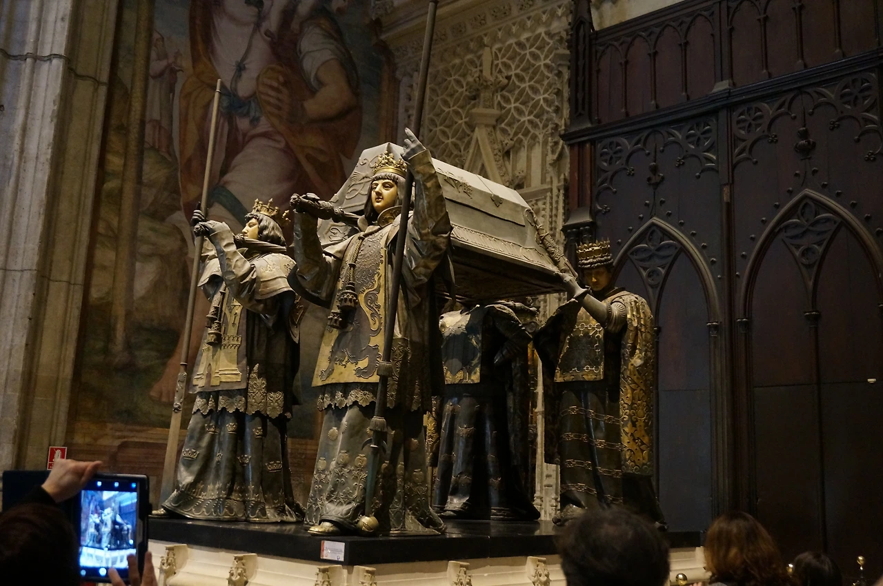 로마의 성 베드로 성당, 런던의 세인트 폴 대성당에 이어 세계에서 세 번째로 큰 규모라는 세비야 대성당에 입장했다. 세비야 사람들은 두 번째라고 주장하고 있다고 한다. 2위인 세인트 폴 대성당이 정통 가톨릭 성당이 아니라 가톨릭에서 분리된 성공회 성당이라는 이유 때문이다. 엄숙한 분위기의 성당 안으로 입장하자 가장 먼저 눈에 띄는 것이 있었다. 바로 콜럼버스의 관이었다. 다시는 스페인 땅을 밟고 싶지 않다는 콜럼버스의 유언에 따라 히스파니올라 섬에 묻혔던 그의 유해는 프랑스가 이 섬을 정복하면서 쿠바로 옮겨졌다. 하지만, 이후 쿠바가 독립하면서 결국 스페인 땅 세비야로 보내지고 말았다. 스페인 사람들은 콜럼버스에 대한 예우로, 통일 전의 스페인 4개국 국왕의 동상들이 관을 들게 함으로써 그의 유언을 지켜주었다. 관이 들려있는 모습을 처음 보았을 때는 ‘콜럼버스의 유언을 조롱하고 있는 건가?’ 하는 생각이 들었지만 사연을 알고 보니 나름 그의 유언을 존중한 스페인 사람들의 최선이 아닌가 싶었다. 쿠바가 스페인으로부터 독립하면서 갈 곳이 없어진 콜럼버스의 유해는 대항해의 출발지인 이곳 세비야로 돌아오는 것이 가장 좋은 선택이었을 것이었다.