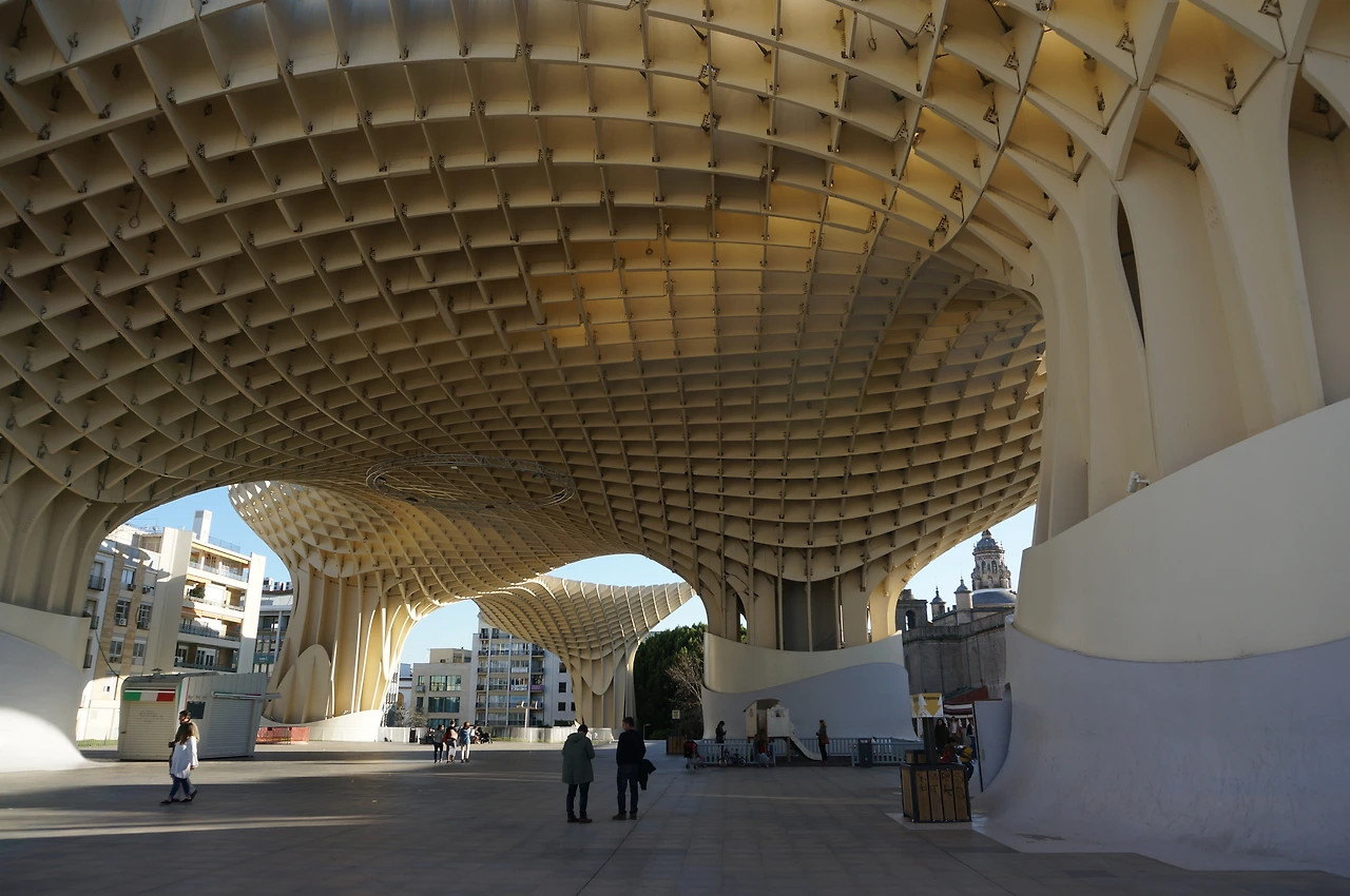 배가 고팠던 아이들의 말대로 ‘메트로 폴 파라솔’은 몇 개의 기둥 위에 커다란 와플을 올려놓은 것 같은 모양이었다. 여러 개의 버섯이 엉겨 붙어 있는 것 같기도 하고 고인돌 같기도 했다. 가우디 건축물에서나 볼 수 있는 부드러운 곡선의 느낌이 아름다웠다. 건물로 향하는 계단에 올라섰다. 철로 만든 것인 줄 알았는데 알고 보니 특수 목재로 만든 목조 건물이란다. 건물 내부를 구경하려고 들어가는 순간, 아이들이 내 손을 뿌리치고 어디론가 달려갔다. 놀이터를 발견한 것이었다. 아이들이 사라지고 나니 홀가분하게 둘러볼 수 있어 좋았다. '메트로 폴 파라솔’에는 3유로에 음료수까지 무료로 즐길 수 있는 유명한 전망대가 있었다. 태양이 서쪽으로 뉘엿뉘엿 지고 있었다. 조금만 더 기다리면 야경 감상도 가능할 것 같았다.