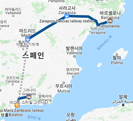 기차처럼 객실 두 개가 이어진 버스를 타고 30분 정도를 가니 그라나다 터미널에 도착했다. 미리 구입해 두었던 승차권으로 말라가행 알사버스를 탔다. 피카소의 고향 말라가를 두 번이나 들름에도 정작 그가 살던 동네는 구경조차 못하고 가는 것이 안타까웠다. 말라가 역에 도착한 우리는 버거킹에서 끼니를 때운 후 마드리드행 열차에 몸을 실었다. 마드리드에서 내려 바르셀로나로 가는 기차를 갈아탈 계획이었다. 원래 우리가 타려고 계획했던 그라나다에서 바르셀로나로 향하는 야간열차 노선은 2016년부터 공사를 했다고 하는데 앞으로도 족히 몇 년은 더 기다려야 할 듯하다. 하긴 가우디의 '사그라다 파밀리아 대성당'도 100년이 넘도록 짓고 있는 스페인 아닌가?
