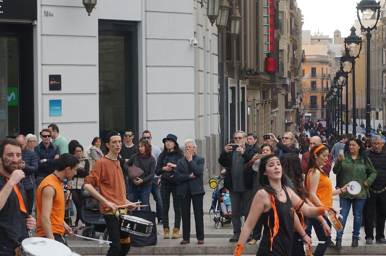 숙소 근처 빵집에서 갓 구운 빵과 커피로 간단히 요기를 했다. 바르셀로나의 심장부라고 할 수 있는 카탈루냐 광장까지 걸어갔다. 일요일의 바르셀로나 시내는 축제라도 하는지 잔뜩 들떠 있는 분위기였다. 알고 보니 마라톤 경기가 있는 날이었다. 휴일 아침임에도 불구하고 청소년들이 흥겨운 난타 공연으로 선수들을 응원하고 있었다. 학생들의 활기 넘치는 공연과 마라톤을 응원하는 시민들의 열기가 도시 전체를 축제공간으로 만들고 있었다. 공연과 응원을 진심으로 즐기는 학생과 시민들의 얼굴 하나하나에 생기가 넘쳤다.