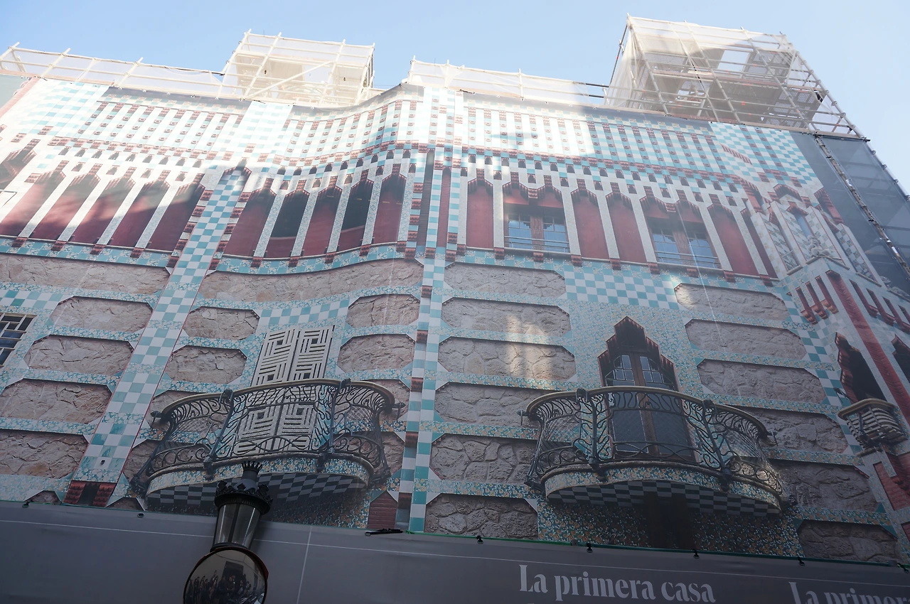 가우디의 초기 작품인 ‘까사 비센스’에서는 다음 작품들의 원형을 만나 볼 수 있다고 한다. 하지만, 우리가 방문했을 때는 아쉽게 보수 공사 중이었다. 공사 중인 건물을 덮고 있는 천막에는 ‘까사 비센스’의 모습이 실물 크기로 그려져 있어 방문자들의 아쉬운 마음을 그나마 달래주고 있었다.
