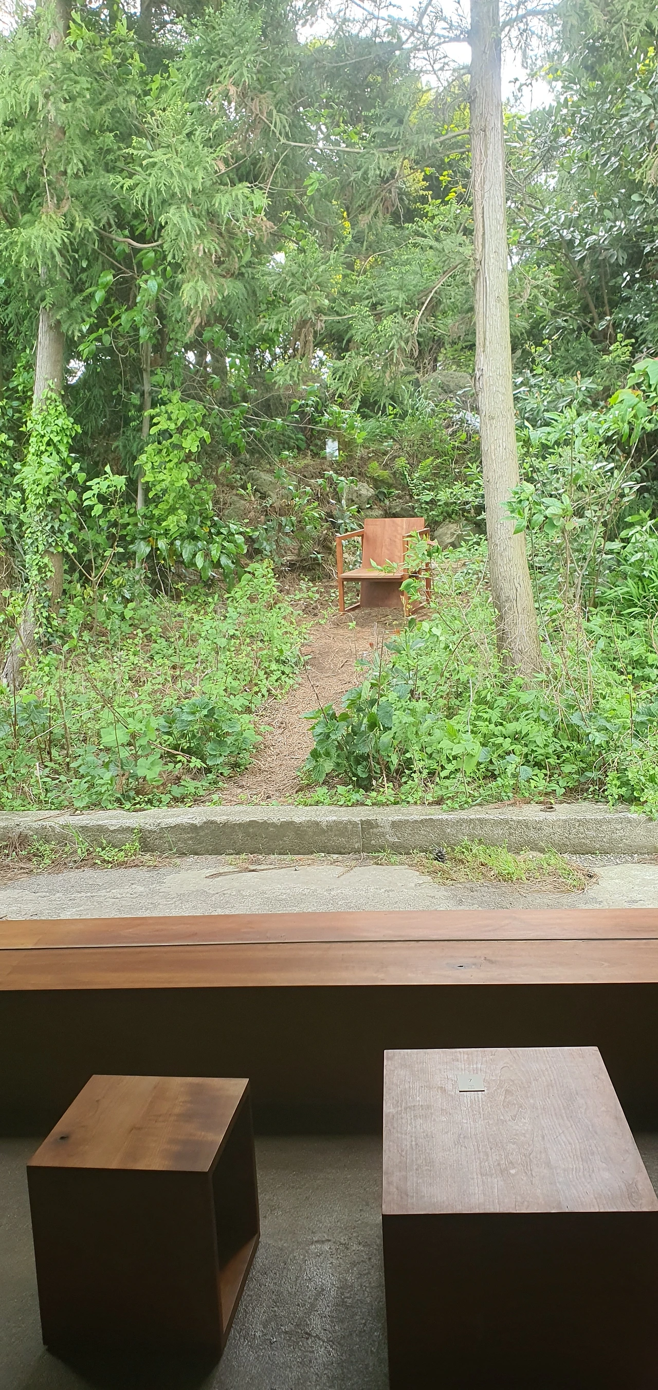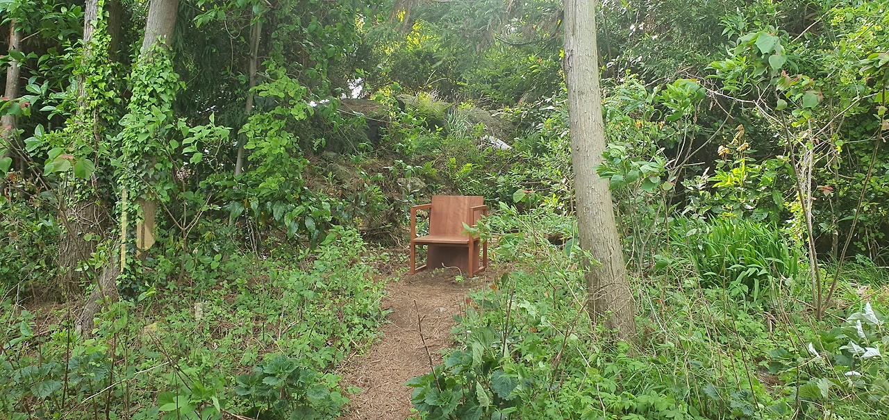누군가 숲 속에 의자를 가져다 놓았네요.