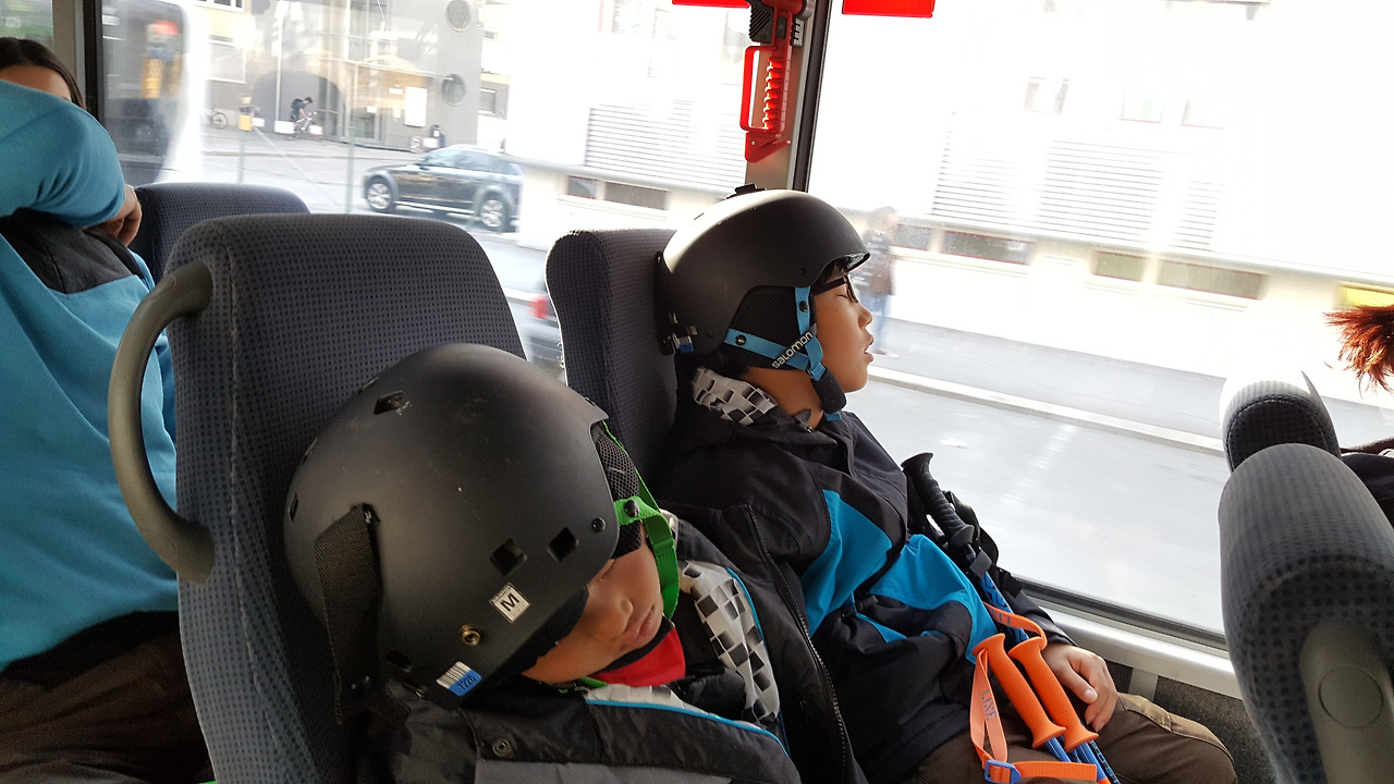 어느새 저녁시간이 다가왔다. 다시 숙소로 돌아가는 버스를 타야 했다. 마지막 버스는 5시 무렵에 있었지만, 막차에는 너무 많은 사람이 몰릴 것 같아 한 시간 일찍 나서기로 했다. 버스는 한 시간에 한 대 꼴로 운행 중이었다. 아이들은 떠나기가 싫은지 못내 아쉬운 표정을 지었다. 그런 아이들이 안타까웠지만, 대여한 스키 장비를 정해진 시간까지 돌려줘야 했기에 어쩔 수 없었다.