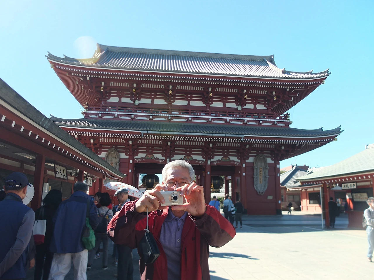 아사쿠사 지역에서 사진 찍으시는 아버지