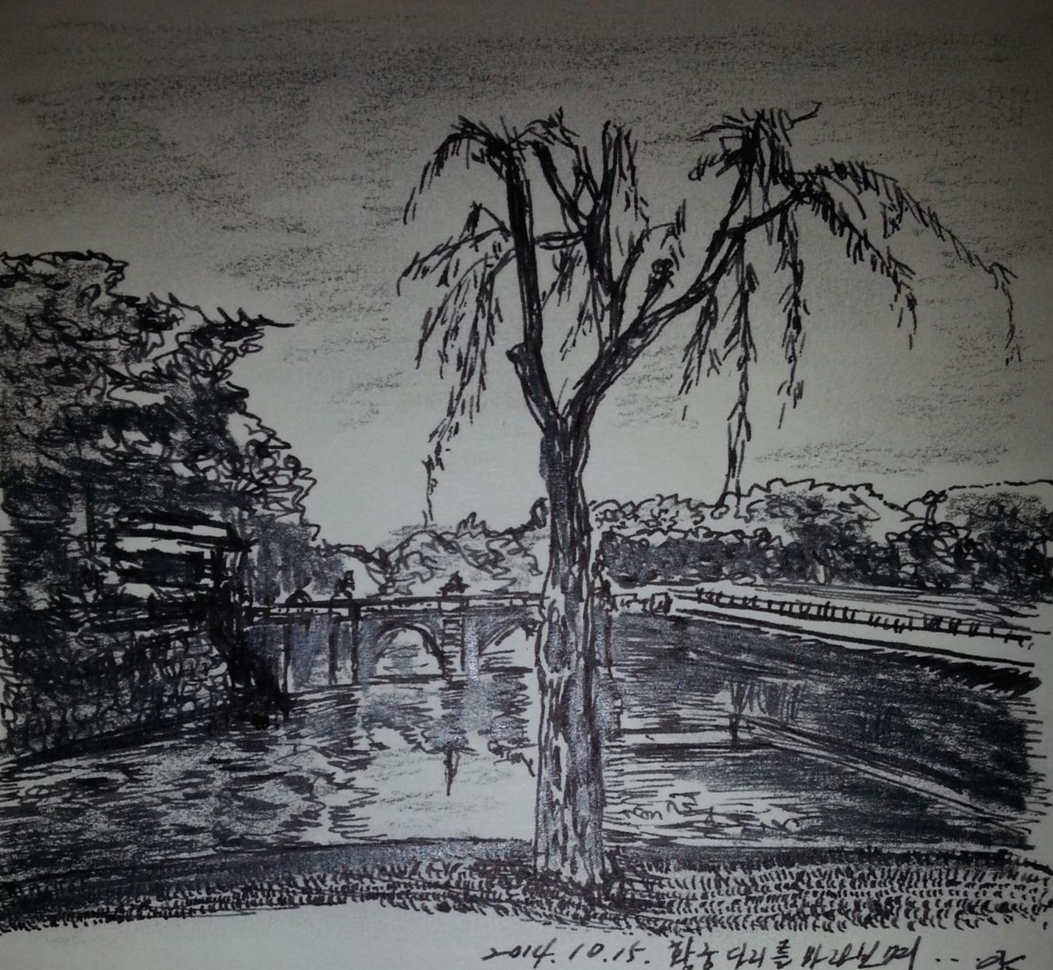 사흘이 지나니, 힘들 법도 하건만 아버지 컨디션은 괜찮으신 듯 해 다행이다. 오늘은 황궁을 본 후 도청사 전망대를 거쳐 점심 후 하코네의 활화산을 보고 시즈오카로 넘어가는 일정이다. 황거는 일본 천황의 실질적 거주지로 관광지로써 개방되어 있다. 현재의 황궁은 에도시대의 궁터에 만들어졌다. 성 주위가 분수공원으로 조성되어 예전엔 해자를 통해 궁에 들어갈 수 있었으니, 외부 공격으로부터 안전하게 지어진 것이다. 버드나무가 유난히 늘어진 정원은 아름답게 조성되어 있고 특히 나가사끼의 안경다리가 생각나는 메가네바시(안경다리)가 인상적이었다. 황궁 건너에는 고층건물이 즐비하다. 일본의 과거와 현대를 한곳에서 볼 수 있었다. 황거 바깥쪽의 정원(고쿄가이엔)은 넓은 잔디밭에 곰솔나무가 잘 조경되어 있어 시민들의 휴식처로 자리 잡고 있다.