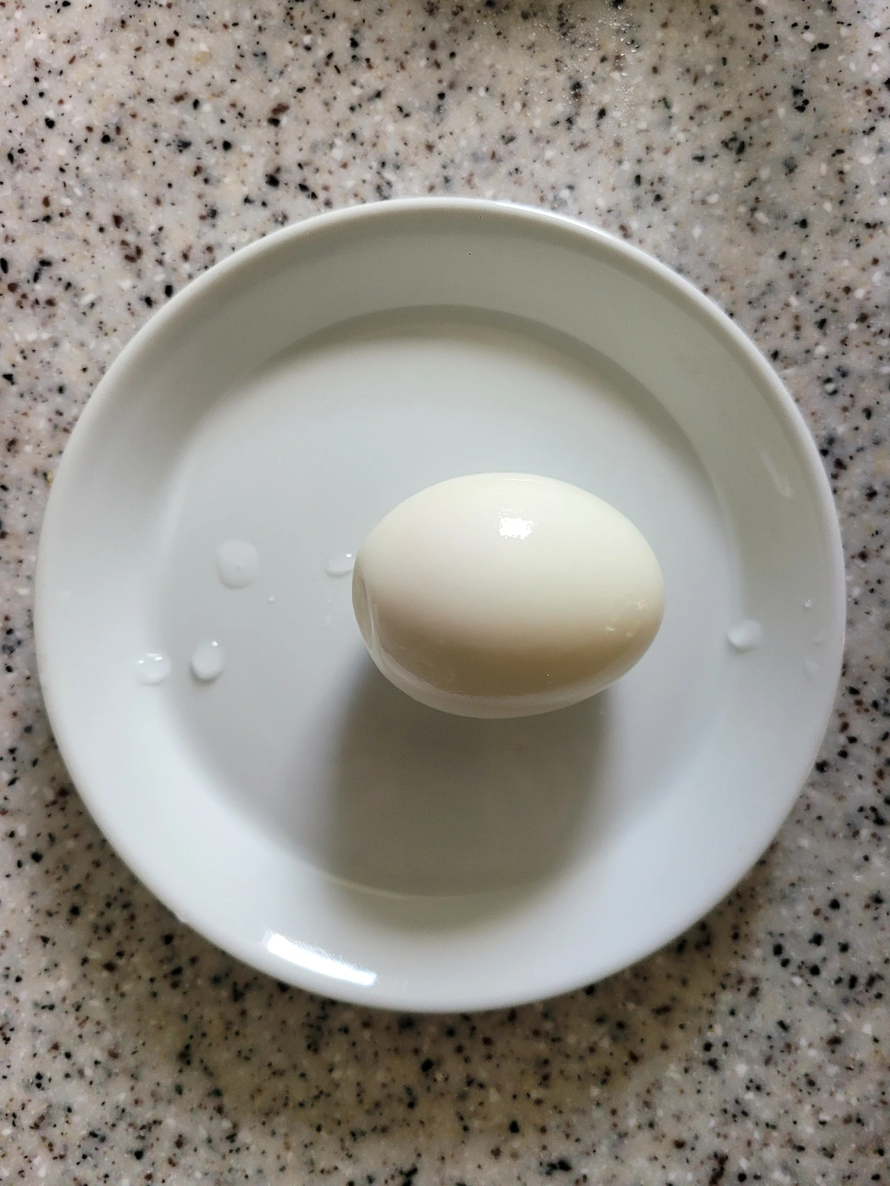 "참자... 누르자 " 일단 찬물을 마신 후, 남은 달걀 세 개를 넣고 7분 더 돌렸다. "이 정도면 지가 안 익고 배기겠어" 꺼낸 후 냉장고로 넣어 버렸다.