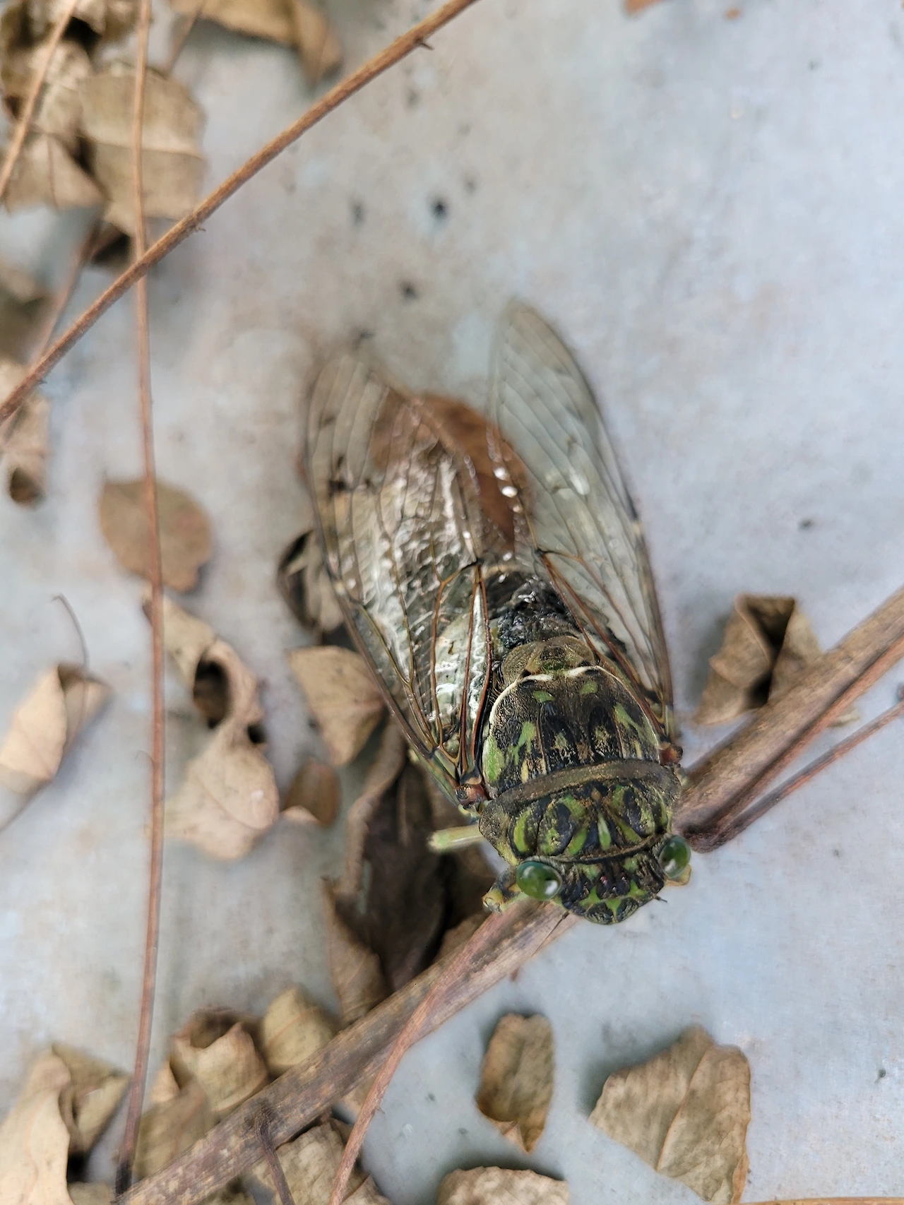 매미가 내 옆으로 떨어졌다.