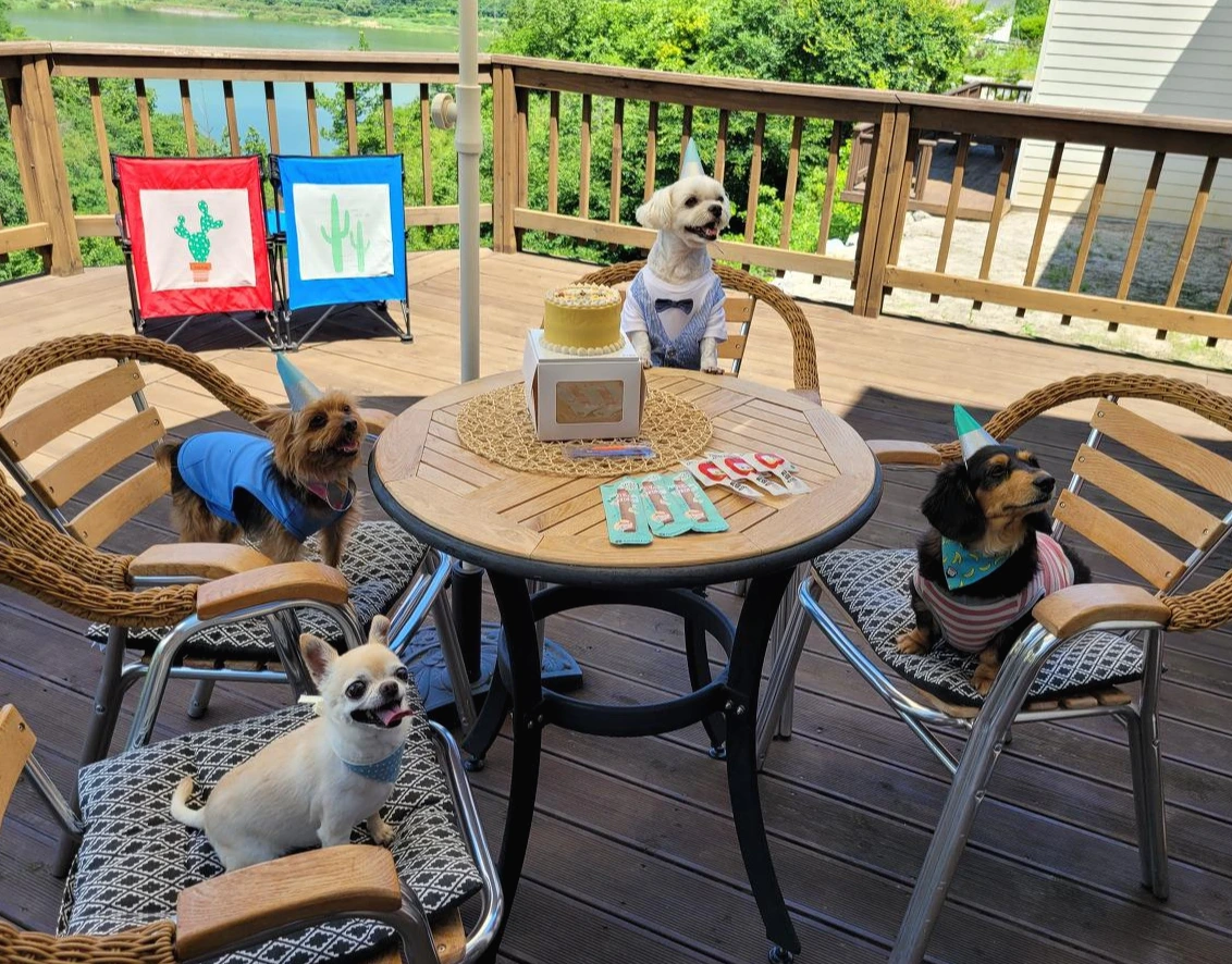 친구 "봉이"의 생일 파티에서 "보리"와 "승리" 그리고 닥스훈트 "후추"가 언제나처럼 사이좋게, 포즈를 취하며 찍은 사진을 다시 보니 입가에 웃음이 맴돈다. 그러고 보니 그날 강아지 생일파티에서 정말 오랜만에 철없이 행복했던 것은 우리 강아지들에게서 위로와 순수한 기쁨을 얻었던 "사람 가족들"이었다.