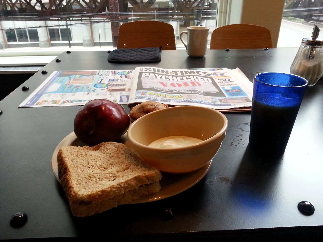 오래된 건물이라 그런지 상점마다 밀고 닫히는 문이 엄청 무겁다. 체구가 큰 사람들이 워낙 많으니 건물도 우리네 것보다 더 튼튼해 보이는 것도 맞지 싶다는 유치한 생각이 들 정도다. 북적거리는 거리에서 서로 부대끼며 스쳐가는 다양한 사람들, 특히 히스패닉이 많이 띤다. 노숙자들도 훨씬 많아진 듯한데 여기도 개와 함께 동정의 눈빛을 보내는 노숙자가 많다. 카페에서는 사람들이 떠들면서 즐겁게 식사한다. 그리고 각자 음식값을 계산하기 위해 카드를 들고 있다. 시카고 사람들 이러니 저러니 해도 스타벅스를 참 사랑하는 것 같다. 대부분 하나씩 들고 다닌다. 그리고 정말 많이 먹는다. 빵과 파스타, 햄버거 이렇게 먹으니 살이 안 찔 수가 없다. 먹어도 너무 많이 먹고 설탕 팍팍 쳐서 먹는다. 테이블 위에 소금과 설탕은 넘치게 있다. 미국은 올 때마다 느끼지만 살찐 사람이 정말로 많은 나라다. 자유를 찾아온 사람들이 세운 나라라, 먹는 것에 대한 자유도 조절하기 힘든 면이 많았는지 모른다.