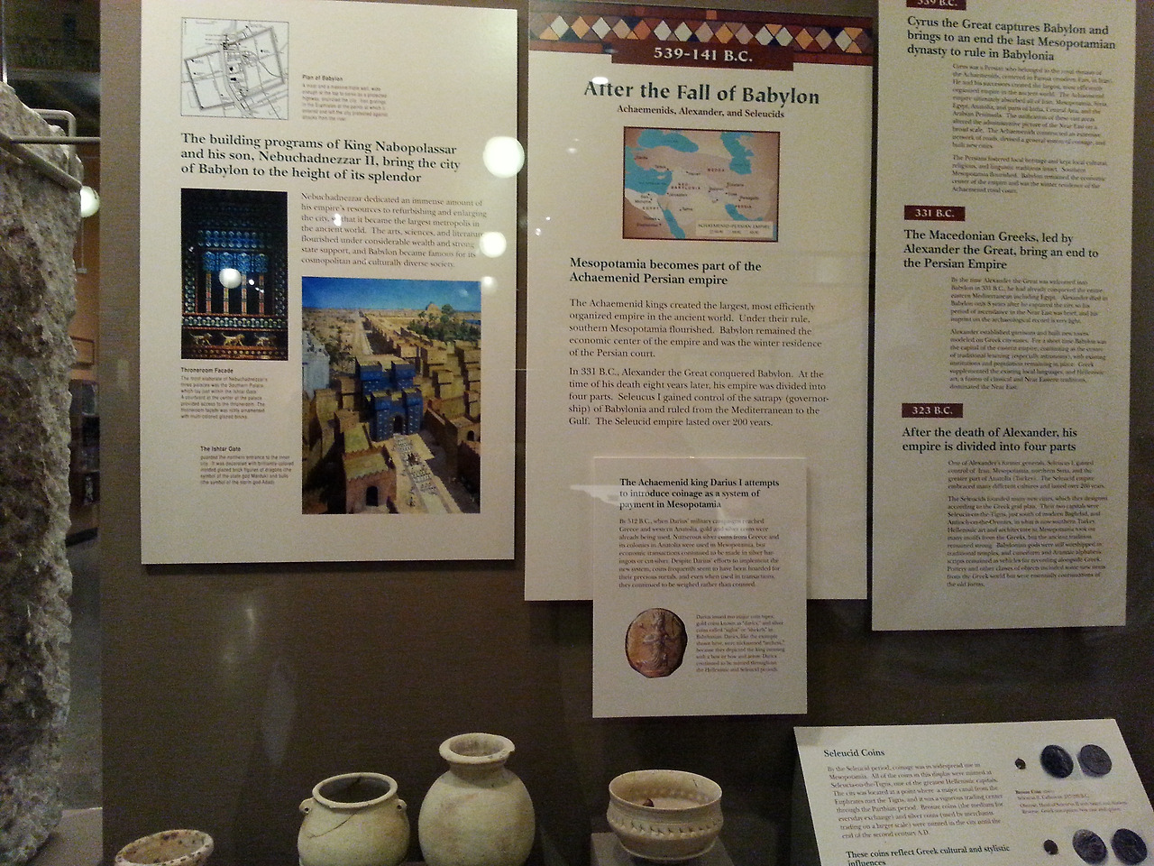 나는 사진을 많이 찍고, 시카고 대학에서 출판한 오리엔탈 박물관에 전시되어 있는 고대 이스라엘 유물에 관한 책을 한 권 구입했다. 시간 날 때 좀 더 깊이 있는 연구를 해보겠다는 욕심에서였지만, 게으름에 아직 책도 다 읽진 못했다. 문명을 확장시킨 것은 유럽, 로마에 의해서 인지는 몰라도 고대 근동, 메소포타미아 지역의 문명이야 말로 인류의 역사와 더불어 훨씬 오래되고 깊숙한 역사를 가지고 있다.