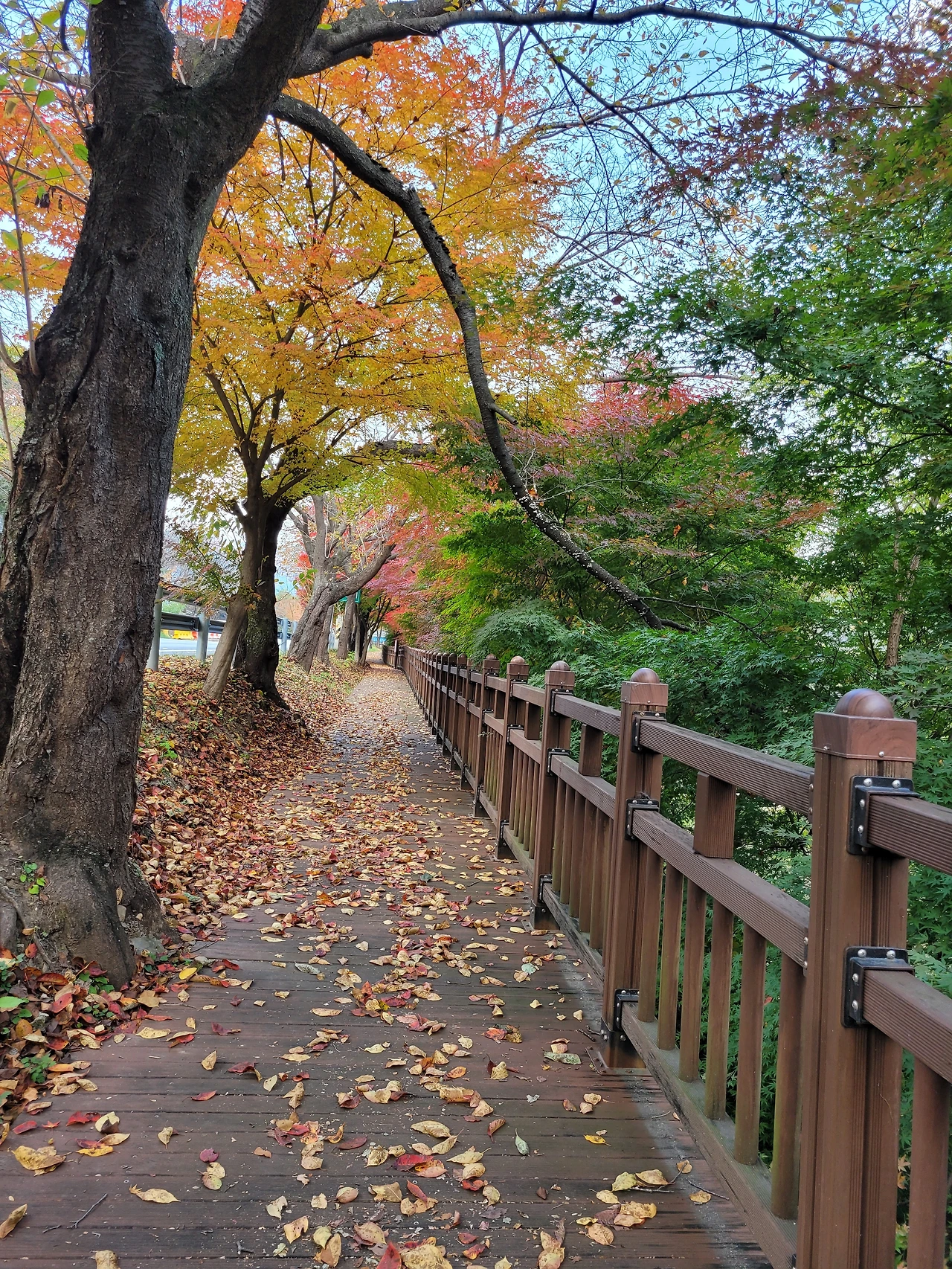 내가 남들과 다르다고, 때로 부족하고 넉넉지 못하다고, 아름답지 못하다고 일이 잘 풀리는 것 같지 않다고 아쉬워할 것도 아니다. 억지 같지만 나 같은 사람이 있기에 더 많이 가진, 더 똑똑하고 잘난 사람들이 돋보였던 것 아닌가. 어쩌면 그들이 내세우며 살 수 있는 이유도 나 같은 사람 때문이 아니겠는가. 되는 것도 못 되는 것도 결국은 같은 것이란 것을 이 숲길은 말하고 있다. 우리는 삶의 퍼즐판에서 매 순간 다양한 모양의 퍼즐을 끼우며 살고 있다. 더 가진 사람도 덜 가진 사람도 각자 삶의 퍼즐을 끼워 맞추며 살아간다. 어떤 모양의 퍼즐을 끼워 맞출지 모를 때도 많다. 어떤 모양인지 정해진 바도 없다. 각각의 퍼즐 모양은 모르지만, 순간순간 달라지는 역할인 것만은 틀림없는 사실이다. 낙엽이 될 때도 있고 꽃이 될 때도 있다. 늘 낙엽이 되는 것도 아니고 늘 꽃이 되는 것은 아니다. 그러니 너무 서글퍼 말자. 내게 주어진 삶의 퍼즐판에 끼워 맞춰야 할 순간의 퍼즐은 내가 택할 수 있는 "지금"뿐이다. 고개 들어 물든 단풍잎만 보고도 행복에 겨운, 만끽하는 마음이 필요한 이유다.